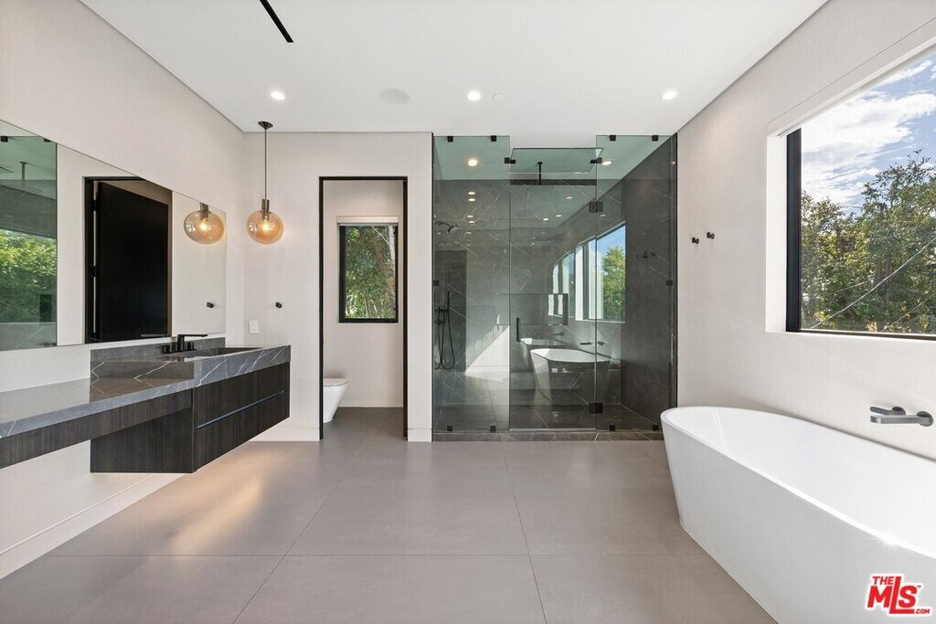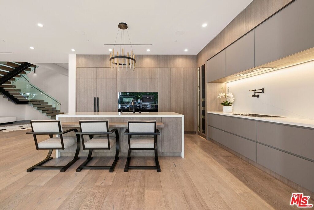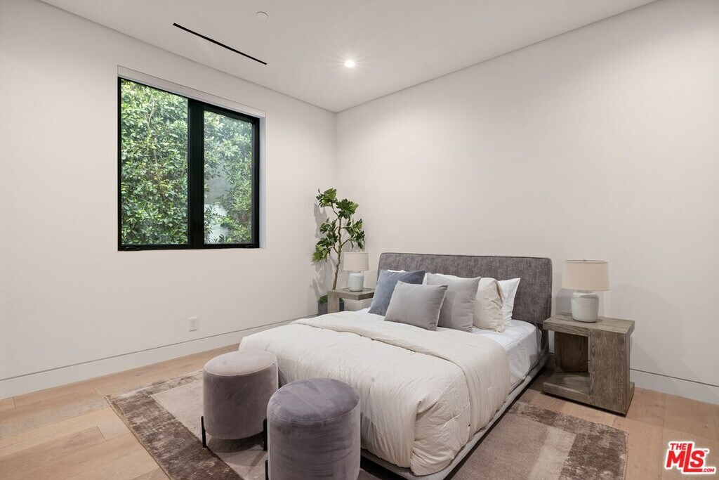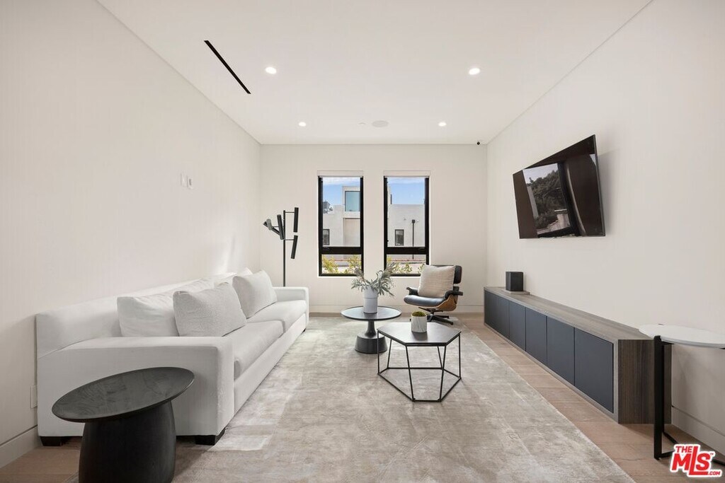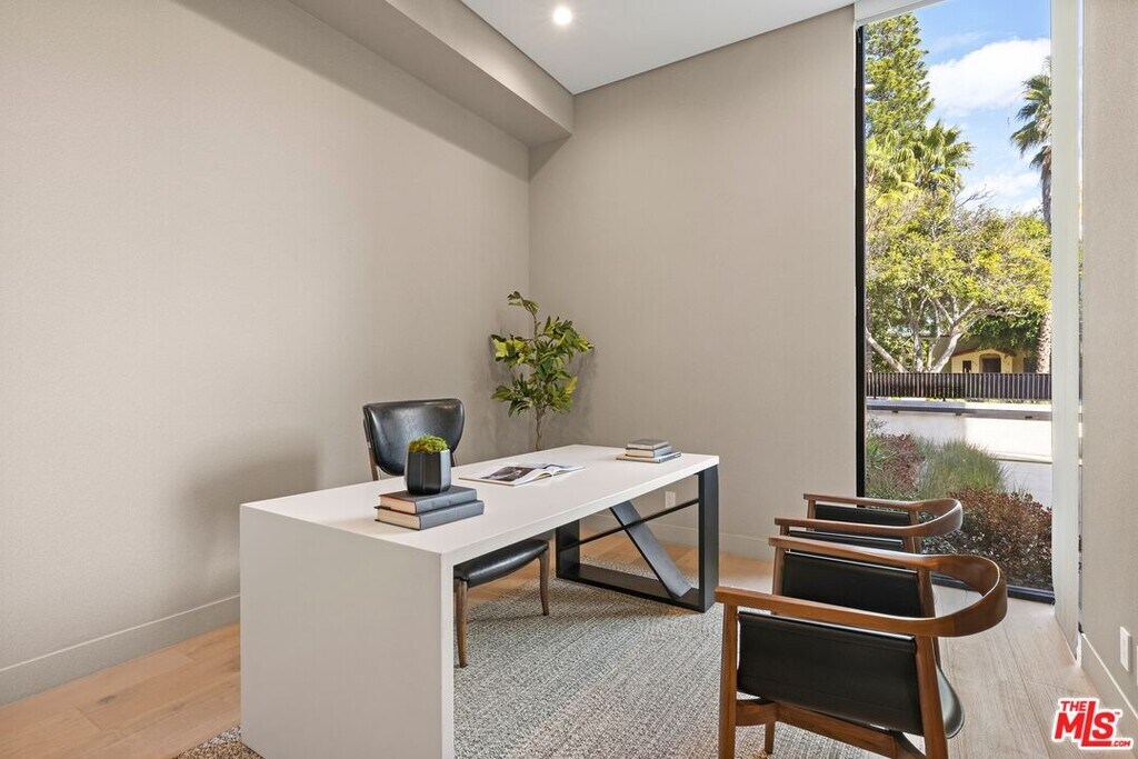 Nestled in the heart of West Hollywood, this Fully Furnished newly-crafted smart home is a symphony of refined elegance and cutting-edge innovation, harmoniously blending organic warmth with contemporary sophistication. Designed as a haven for grand entertaining and bathed in natural luminescence, the residence offers a flawlessly fluid layout adorned with curated finishes that epitomize the quintessence of Southern California's enviable indoor/outdoor lifestyle. The master suite serves as a sanctuary of romantic opulence, replete with dual bespoke walk-in wardrobes, an intimate fireplace, a sumptuous private balcony, and a spa-like en suite bath. Additional refined amenities include a secluded home office, a wine cellar capable of housing a 270-bottle collection, a distinguished piano lounge, and an elegant formal dining chamber. Pocket doors grace the interiors, enhancing the spatial flow, and an upstairs family/media salon adds a touch of familial warmth. The gourmet chef's kitchen stands as a testament to culinary artistry, furnished with Italian marble countertops and outfitted with the crme de la crme of modern appliances. Step into your personal Zen-inspired oasis in the backyard, complete with a tranquil pool and spa, or ascend to your private rooftop terrace. Here, a built-in BBQ awaits, setting the stage for unforgettable sunset soires beneath a tapestry of stars. MLS# 25608533