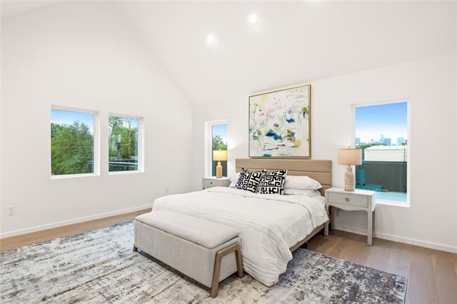 Situated in vibrant Trinity Groves, this stunning new construction home offers unrivaled build quality with all the neighborhood conveniences to boot. Custom home-builder, Elijah Kord, designed and built this sleek abode with total detail in mind, featuring pitched ceilings, skylights, level 4 smooth walls, Sonos surround sound, and gorgeous windows throughout. The open concept floor plan and light floors provide an open and airy entertaining area, anchored by a chef's kitchen overlooking the dining and living room. Downstairs also plays host to a dedicated office and one bedroom with its own en-suite bath. The second floor welcomes you with a living area on the landing, connecting the 3 bedrooms and laundry room. Outside, an expansive outdoor deck (640 sqft) overlooks the private yard as well as direct views of the downtown skyline. Experience luxury living with easy access to dining, retail, major highways, and both airports.