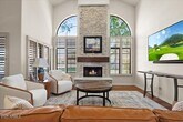 Stunning furnished 4 bed,2.5 bath home in the highly sought-after Scottsdale Country Club,offering luxury resort-style living in a quiet,guard-gated community. This beautifully designed home features an open,spacious layout w/ soaring ceilings & refined finishes throughout. The kitchen boasts black appliances,island,elegant cabinetry & spacious dining. The primary suite offers patio access,huge spa-like bathroom w/ dual vanities,shower,bathtub,& walk-in closet. Three additional bedrooms provide ample space for guests & home office. Huge wrap-around back patio w/ views of the Starfire Golf Club ''The King'' course hole #4 & large pond w/ fountain. Community amenities include golf,tennis,& scenic walking paths,minutes from world-class shopping,dining,& more. Vacation Rental.