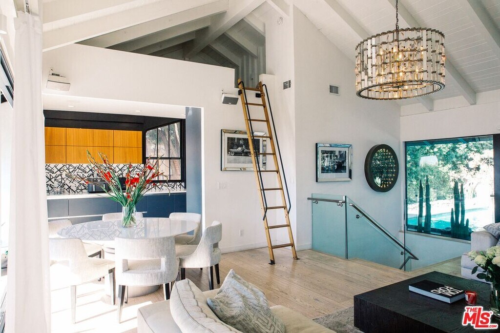 Located in the coveted Hollywood Hills, this thoughtfully remodeled home offers elevated modern living. Soaring ceilings, expansive windows, and white-washed floors create a bright, open feel, complemented by a sleek fireplace and a versatile loft overlooking the main living space. The chef's kitchen features high-end appliances and custom Italian cabinetry, while Fleetwood doors provide seamless indoor-outdoor flow. Additional highlights include a Sonos sound system, Lutron Caseta smart lighting, heated bathroom floors, custom walnut cabinetry, updated roof and HVAC, and an EV charger in the two-car garage. Short term rates to vary. MLS# 26691865
