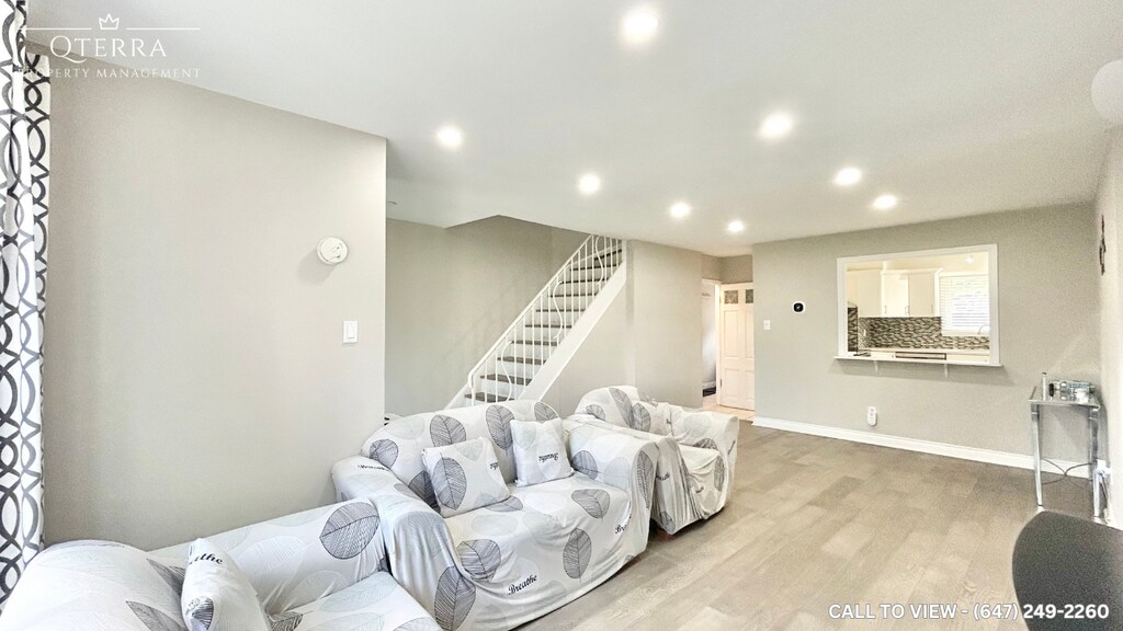 BEAUTIFUL 3-BEDROOM MAIN LEVEL UNIT WITH MODERN UPGRADES Step into this beautifully renovated 1300 SQFT home offering a perfect blend of style, comfort, and functionality. Ideal for families or professionals seeking a refined living experience in a peaceful residential setting. KEY PROPERTY DETAILS: - Type: Main Level - Bedrooms: 3 - Bathrooms: 2.5 - Size: 1300 SQF - Parking: 2 spots included - Locker: 1 included - Availability: October 1, 2025 UNIT AMENITIES: - Newly Renovated: Freshly updated interiors with modern materials and craftsmanship. - Internet Included: Stay connected with complimentary high-speed internet. - Upgraded Kitchen: Featuring stainless steel appliances, quartz countertops and an upgraded backsplash, for optimal cooking and entertaining. - Dishwasher: For added convenience and efficiency. - Vinyl Flooring: Stylish and resilient flooring throughout, offering easy upkeep and a contemporary look. - 8-Foot Ceilings: Creates a spacious, airy feel throughout the home. - Shared Laundry: Accessible laundry facilities shared with adjacent units. - Personal Thermostat: Control your indoor climate with ease and precision. - Upgraded Bathrooms: Modern fixtures and finishes including an ensuite bathroom in the primary bedroom for added privacy. - Regular Closets in All Rooms: Ample storage space in each bedroom. - Partly Furnished: Select furnishings included to ease your move-in process. - Open Concept Layout: Seamless flow between living, dining, and kitchen areas. - Natural Light: Large windows flood the space with sunlight, enhancing warmth and openness. BUILDING AMENITIES: - View: Enjoy courtyard/backyard views from your windows. - Parkade: Secure parking for residents. NEIGHBORHOOD: Corby Crescent is nestled in Brampton South, a mature and family-oriented neighborhood known for its quiet streets and convenient access to urban amenities. Residents enjoy proximity to Shoppers World, Sheridan College, and the Downtown Brampton GO Station, making commuting and shopping a breeze. The area features a mix of charming semis and detached homes, with nearby parks, schools, and local eateries adding to its welcoming community vibe. Contact us today to schedule your showing and secure this exceptional unit!