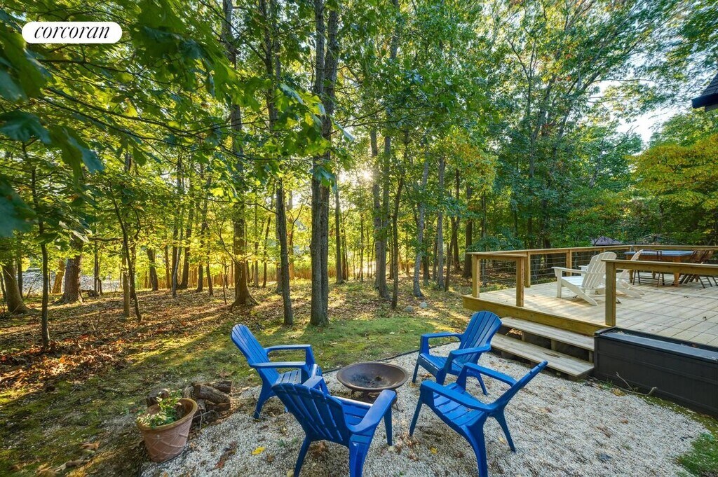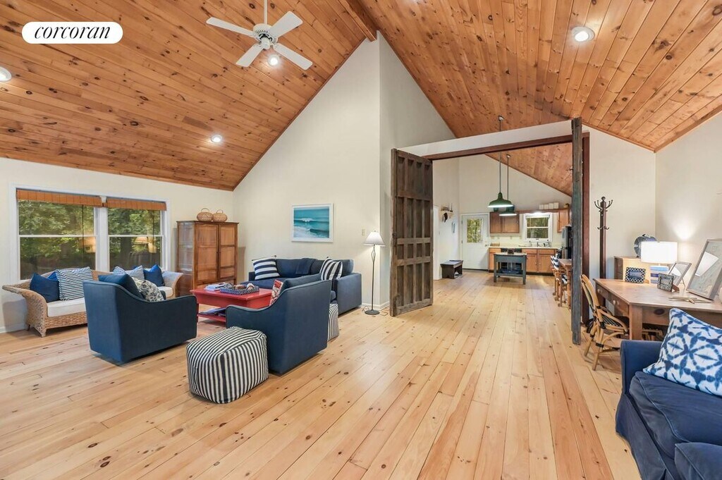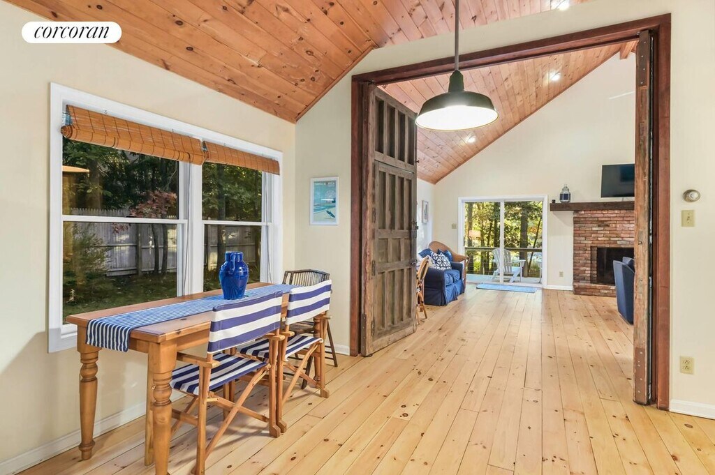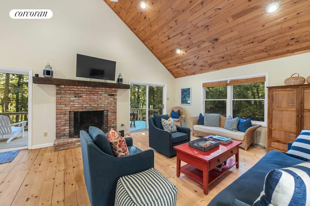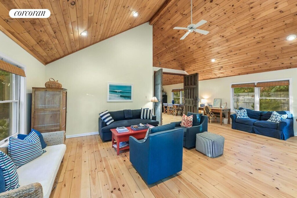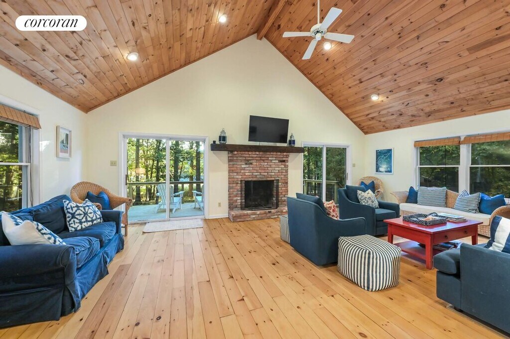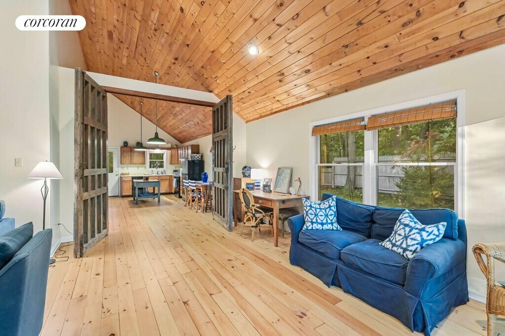 Just outside Sag Harbor Village 83 Laural Lane is a lofty, open concept home overlooking Lily Pond. Features a wonderful deck, fire pit, sunset views in a quiet neighborhood only 5 minutes to the center of Sag Harbor's Main Street. There is also a detached art studio to enjoy yoga or simply retreat to another peaceful space. Only one mile from shopping and restaurants on Main Street. Estia's a popular brunch spot is just around the corner (and soon to come Goldberg's Bagels). The neighborhood has hiking trails around the many ponds part of the Long Pond Greenbelt. Bridgehampton a short 10 minute drive and quick access to back roads leading to Southampton. [[Rental Registration # RP250130]]