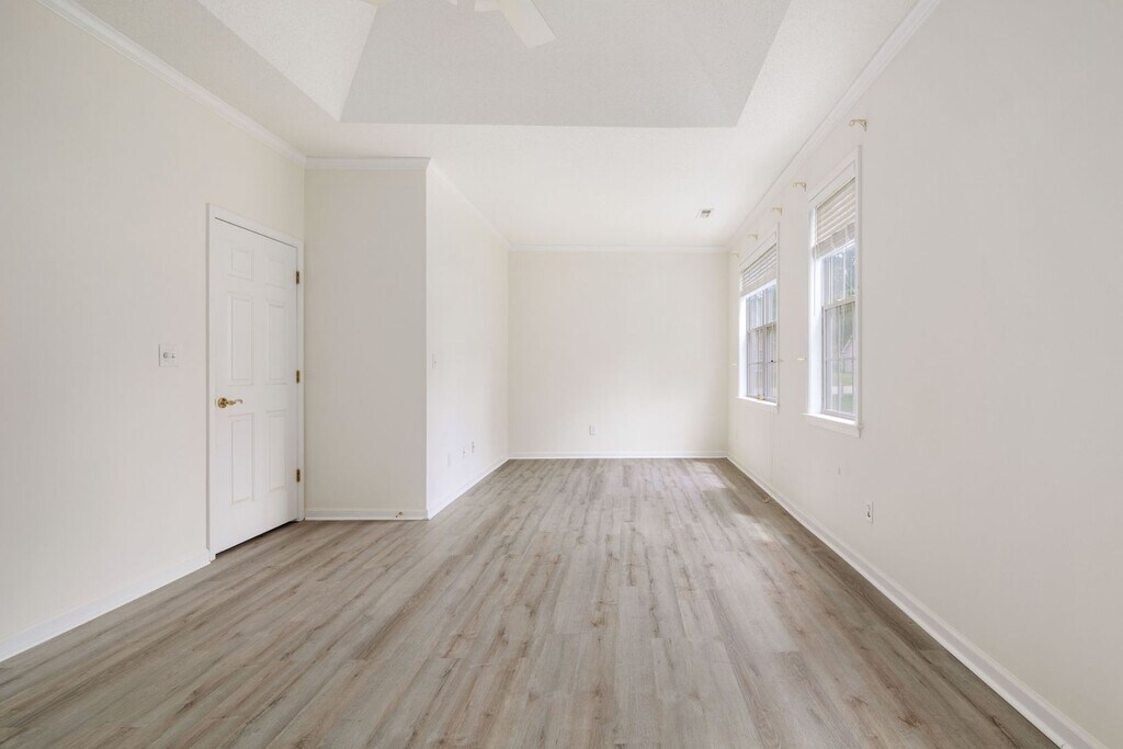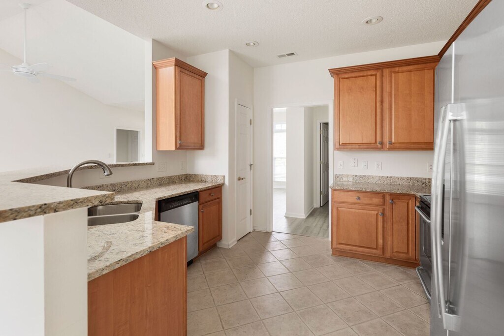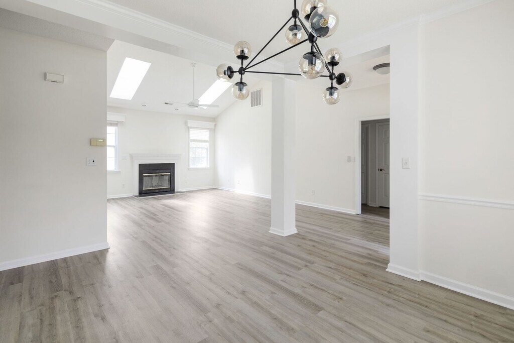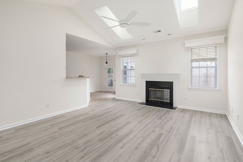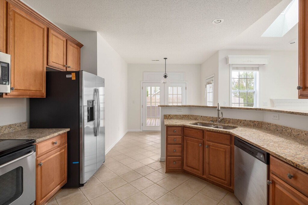 Beautiful home situated on a corner lot in a great Fletcher neighborhood, offering open plan living, split bedrooms, and a huge screened porch! The great room features vaulted ceilings with skylights, a wood-burning fireplace, formal dining space, and an open kitchen with a breakfast nook. The kitchen has access to the back patio and grassy backyard, and French doors open onto the screened porch, providing great additional living space with pitched ceilings and ceiling fans. The kitchen includes granite counters, a pantry, and stainless appliances including the microwave, refrigerator, electric smooth-top range, and dishwasher. The primary bedroom suite offers plentiful windows, a walk-in closet with built-in shelving system, and the en suite bathroom with a stall shower, separate garden tub, and dual-sink vanity. The second and third bedrooms, located on the other side of the home, share the full hall bathroom, which has a shower/bathtub combo. Between the kitchen and attached garage are the laundry room with the washer and dryer included, as well as stairs up to the fourth bedroom. Central heat and air conditioning with gas heat. Tenant responsible for all utilities. Lawn mowing provided by the HOA; tenant responsible for all other landscape maintenance, including pruning, weeding beds, and leaf removal. Pets negotiable with $1000 refundable pet deposit per pet - maximum two pets per HOA. No smoking. No cosigners.