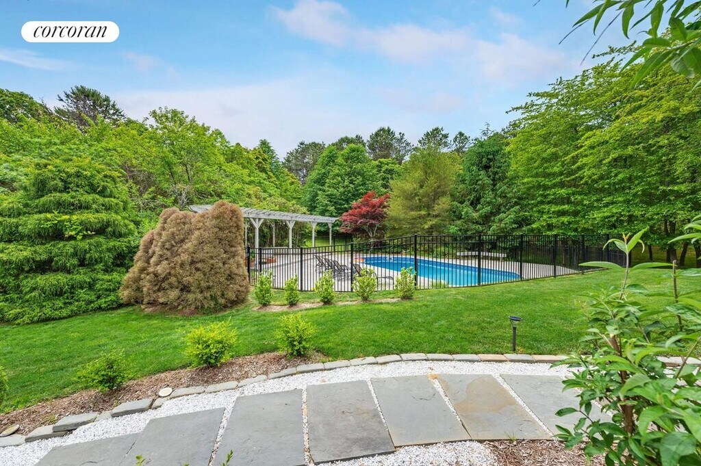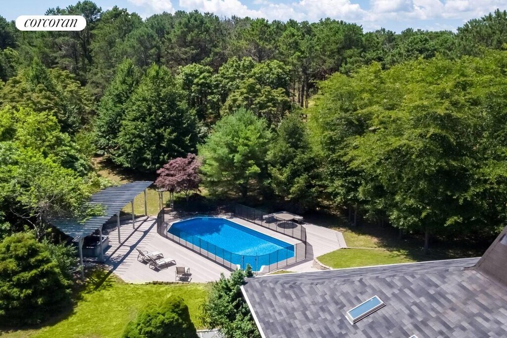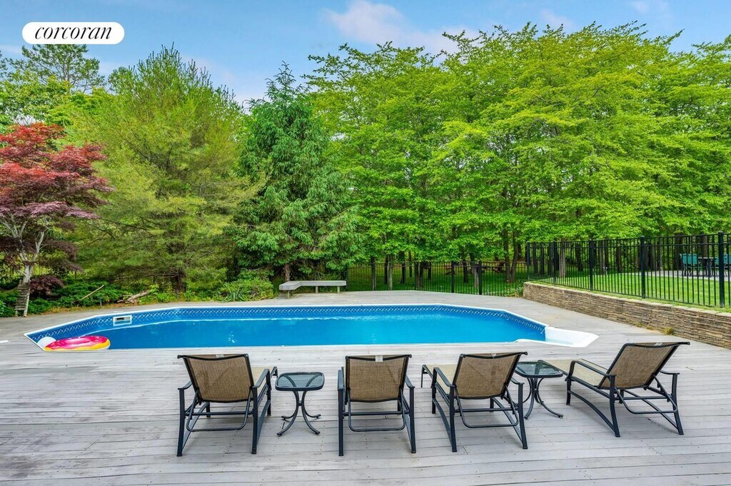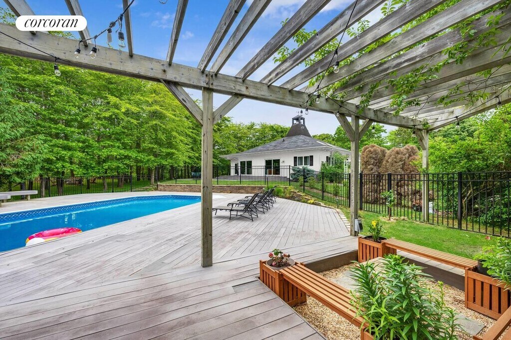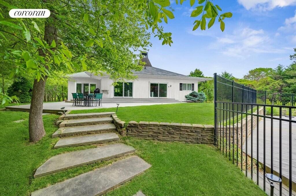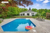Nestled on more than two +/- acres of lushly landscaped grounds, and just minutes to Southampton Village and ocean beaches, this stylish Contemporary speaks to those who appreciate the luxury of privacy. At 2,000 +/-square foot, the main level of this renovated home features an open floor plan with glass sliders that bring in the outdoors. The large living room has a fireplace with flat screen television above, a separate light-filled dining room and modern kitchen all with access to the large deck for entertaining. The master bedroom suite has a brand new bath and private patio and there are two additional bedrooms that share a new renovated bath. The 1,500 +/- square foot lower level boasts an additional living room with full bathroom and a murphy bed for extra guests. This perfect retreat also has a pool, pergola and a fire-pit for those chilly nights. [[Rental Registration # RP251699]]