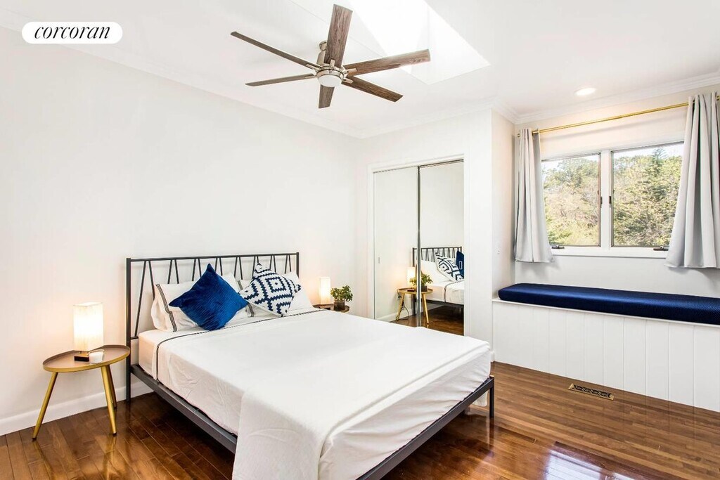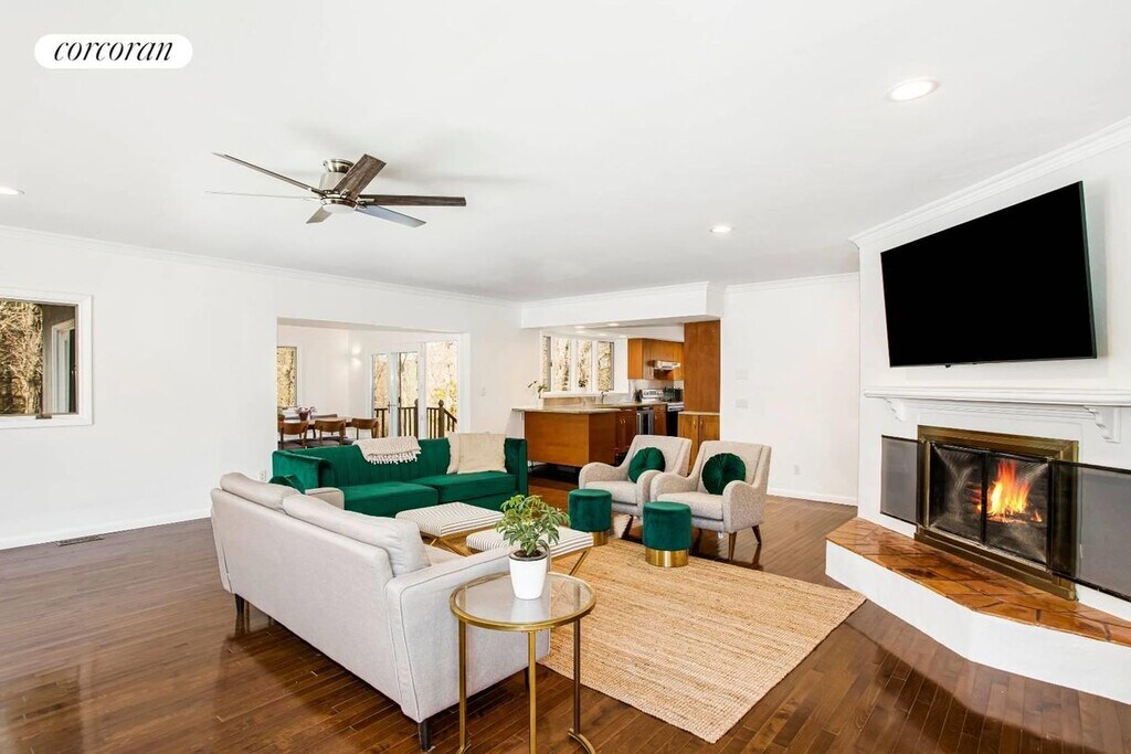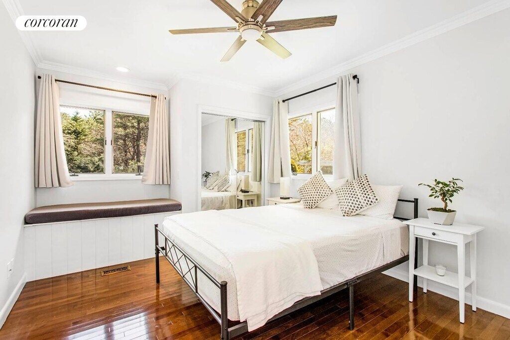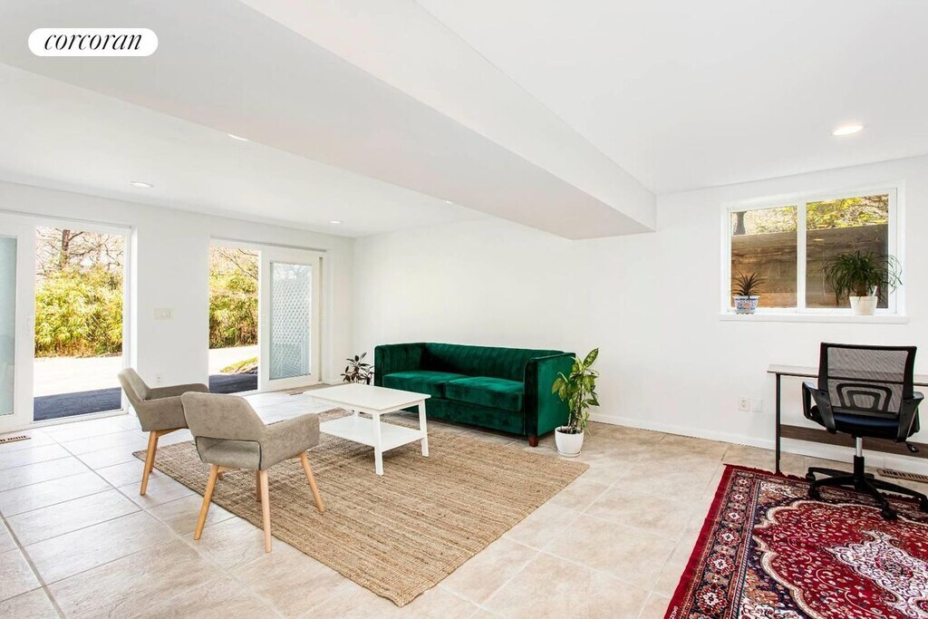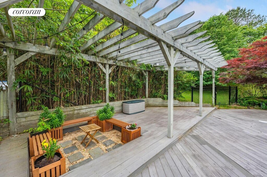 Nestled on more than two +/- acres of lushly landscaped grounds, and just minutes to Southampton Village and ocean beaches, this stylish Contemporary speaks to those who appreciate the luxury of privacy. At 2,000 +/-square foot, the main level of this renovated home features an open floor plan with glass sliders that bring in the outdoors. The large living room has a fireplace with flat screen television above, a separate light-filled dining room and modern kitchen all with access to the large deck for entertaining. The master bedroom suite has a brand new bath and private patio and there are two additional bedrooms that share a new renovated bath. The 1,500 +/- square foot lower level boasts an additional living room with full bathroom and a murphy bed for extra guests. This perfect retreat also has a pool, pergola and a fire-pit for those chilly nights. [[Rental Registration # RP251699]]