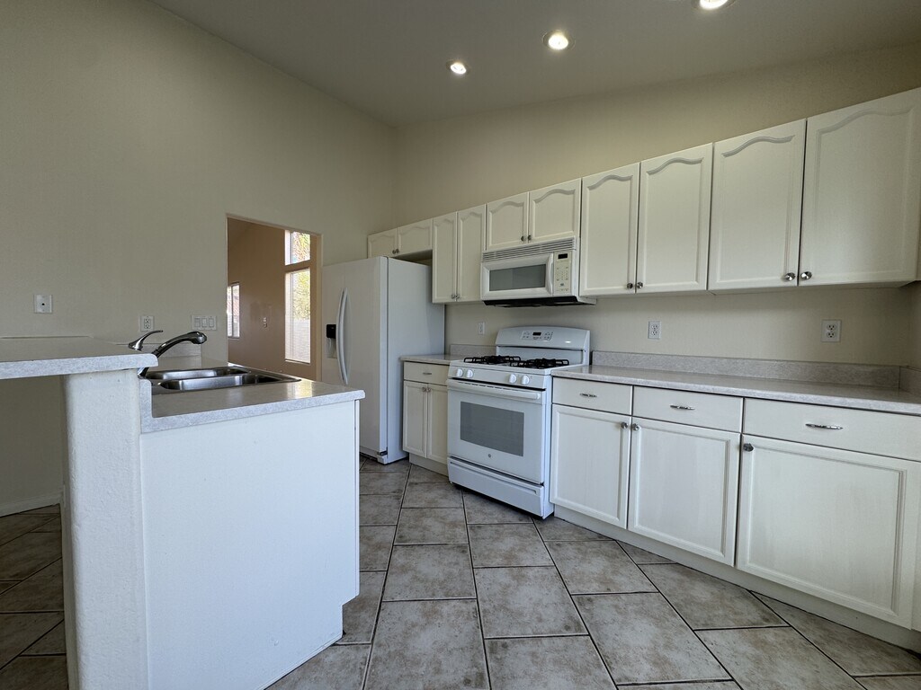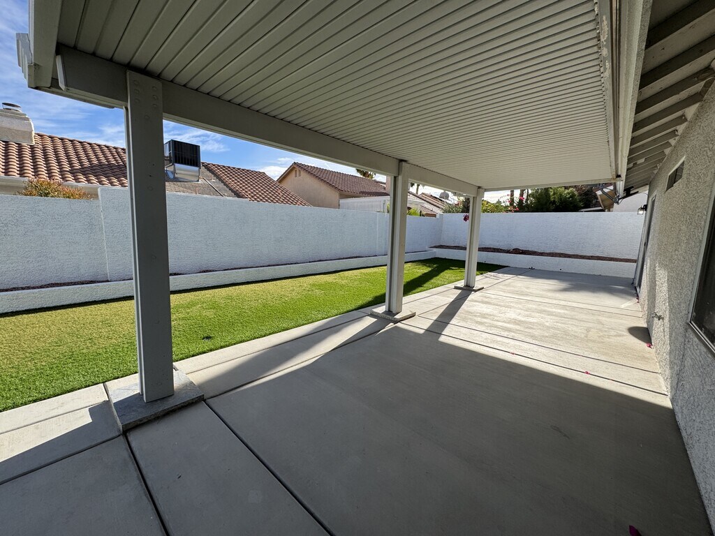 Beautiful Single Story 3 Bedroom / 2 Bathroom Home Near Black Mountain in Henderson * Lrg Primary Suite Features Walk in Closet & Sliding Door to Backyard, Primary Bath w/Double Sinks, Vanity, Jetted Tub, & Separate Shower * Nice Open Floorplan w/Two-Way Fireplace for Living Room & Family Rm * Kitchen Features White Cabinets & Matching All White Appliances, Breakfast Bar, & Nook * Landscaping w/Synthetic Grass in Frt & Rear, Rear Yard Has Lrg Covered Patio *