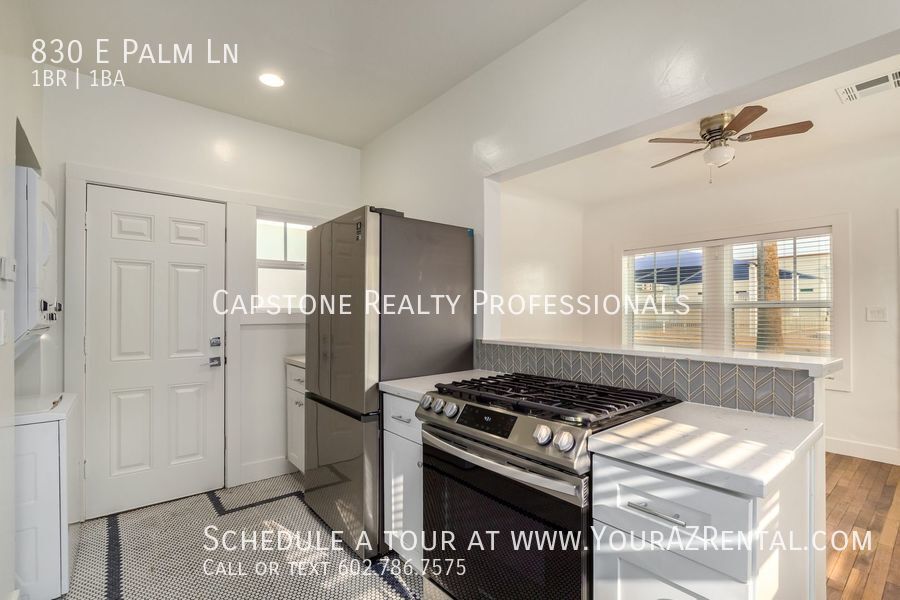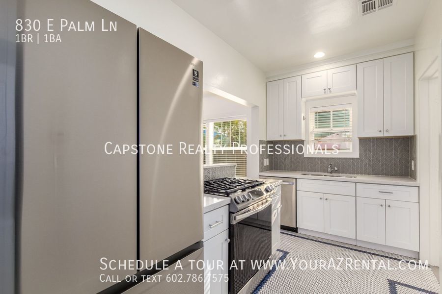 Rare opportunity to live in the highly desirable Coronado neighborhood. If you are familiar with the area then you have surely driven past this home to admire the art work of Lauren Lee. This stunning one bedroom one bath home has been completely updated but has kept the charm that comes with historic living. Brand new modern stainless steel appliances, inside washer and dryer are some of the modern luxuries that this home features. Fresh paint, updated counter tops, brand new kitchen flooring are just some of the updates! Storage is not an issue with this property with an almost 100 sqft shed available for use. Private backyard with pergola is great for entertaining friends and family. The home features high ceilings and the original solid oak floors have been restored. THE CORONADO NEIGHBORHOOD: Phoenix Magazine ranked the Coronado Historic District as the hottest neighborhood in the Valley. Coronado is known for smaller homes, usually with two bedrooms and one bath. The average bungalow has a small footprint, averaging about 1,000 square feet, and sometimes as small as 700 square feet - sustainable living at its best! There is often more to Coronado than meets the eye. Ample backyards may host a permaculture garden, a flock of chickens, or a state-of-the-art addition that quietly hides behind a traditional Territorial in front. Coronado is home to one of the largest city parks, Coronado Park, with tennis, basketball, a lighted baseball field (kickball anyone?), and a community pool with a water slide (Weee!) Students from across the city come to North High School's competitive and highly recognized International Baccalaureate program. Coronado is home to restored 1920 Bungalows and 1940 Ranches, many are showcased in the annual Coronado Home Tour and street fair, which is getting bigger every year. Great restaurant choices are The Main Ingredient on 7th Street, the five-star Barrio Cafe, and Tuck Shop at the end of the street! Being outside, sitting under a wide shady porch is popular and may be why everyone in Coronado seems to know each other. Drive, walk, or bike down one of the streets lined with restored historic homes and friendly neighbors to feel the community pride and unique energy of this central Phoenix community. -- Monthly Fee: Resident Benefit Package $49.99 Security Deposit: Equal to one months rent Cleaning Deposit: $275.00 Pet Deposit: $200.00 per pet One Time Lease Administrative Fee: $150.00 Water/Sewer/Trash: $50.00 (+$10 per additional occupant) Historic Neighborhood Huge Storage Shed Private Courtyard Private Washer And Dryer Range Oven/Gas Vertical Blinds Washer Included; Dryer Included Wood Flooring