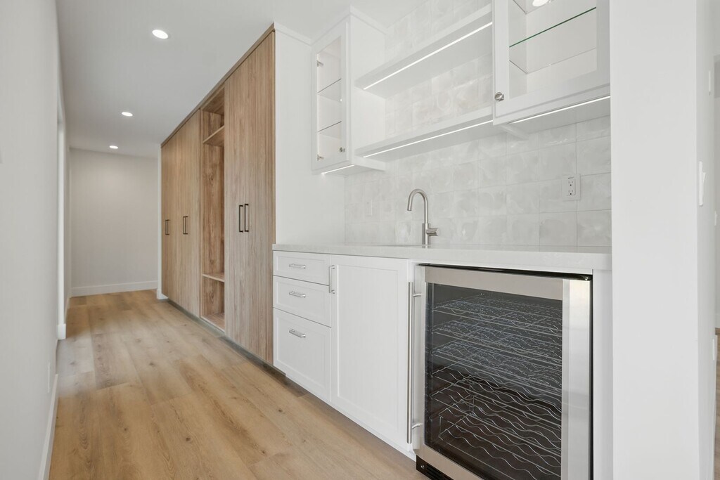 Beautifully Remodeled Home for Rent in Glendora! Step into this modern residence, fully updated from top to bottom with high-end finishes and thoughtful design throughout. Interior highlights include durable waterproof plank flooring, bathrooms with elegant tile, new sinks, toilets, sleek glass-enclosed showers, and a primary suite featuring a relaxing soaking tub. The chef-inspired kitchen offers custom cabinetry, quartz countertops, a large island with built-in microwave, and premium appliances including a Thor 6-burner stove, LG dishwasher, and Samsung smart refrigerator. A stylish coffee bar and built-in bar area with wine and beverage fridge make this home ideal for entertaining. The convenient laundry room includes an LG washer/dryer and custom storage. Additional upgrades include new insulation for enhanced energy efficiency, smooth-finish walls and ceilings with refined detailing, modern doors and hardware throughout, and expansive 15-foot sliding doors that open to a beautifully landscaped backyard, perfect for relaxing or hosting gatherings. This home perfectly combines luxury and comfort in a quiet, sought-after neighborhood, and it’s move-in ready for you to enjoy. Refrigerator, washer and dryer inclulded, not maintained.
