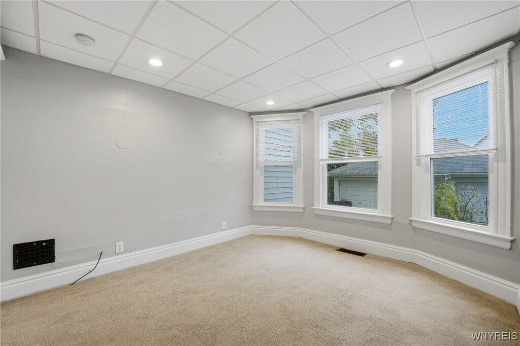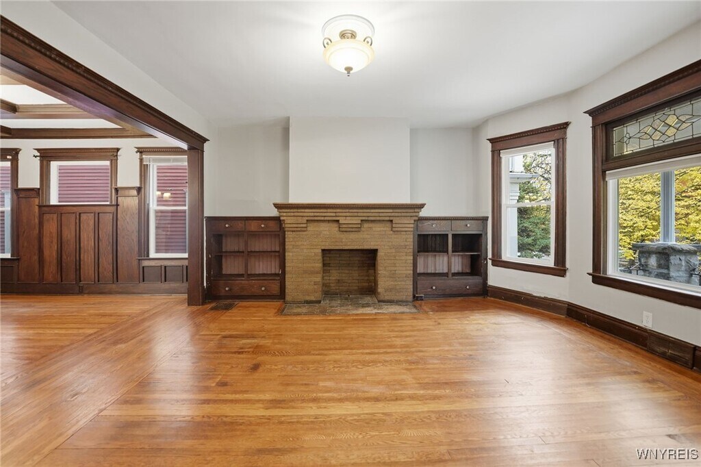 Located on a stunning,tree-lined street in Buffalo’s highly desired Elmwood Village,this charming,three-bed lower has just about everything you could want. This gem greets you with its covered front porch - the perfect spot to relax on warm summer nights or cool autumn evenings. From there,you are welcomed into the front foyer where you can kick off your boots and hang up your coat before entering the spacious living room with original brick fireplace (NRTC) flanked by built-in bookshelves. The old world character and charm continue as you follow the beautiful hardwood floors into the large,formal dining room with coffered ceiling and wainscoting. No surface was left untouched in the completely renovated full bath w/ ceramic tile,updated vanity,floors,fixtures and walk-in shower with glass doors. This space boasts an exceptionally large primary bed w/ two more well-sized beds - all with closets! A clean & bright,fully applianced kitchen,dedicated laundry and off-street parking - what more could you need? Literally steps from Chapin Parkway,Bidwell Park,Hoyt Lake,the Elmwood strip and all of the shops,restaurants and events that make city living in Buffalo so attractive! Minutes from the thruway,downtown and the medical campus. Proof of income/ability to pay rent,credit/background check required. No smokers please.