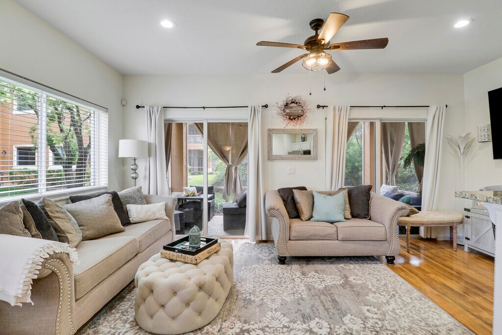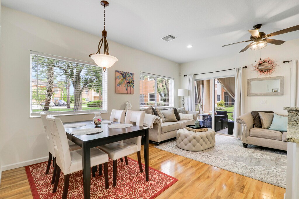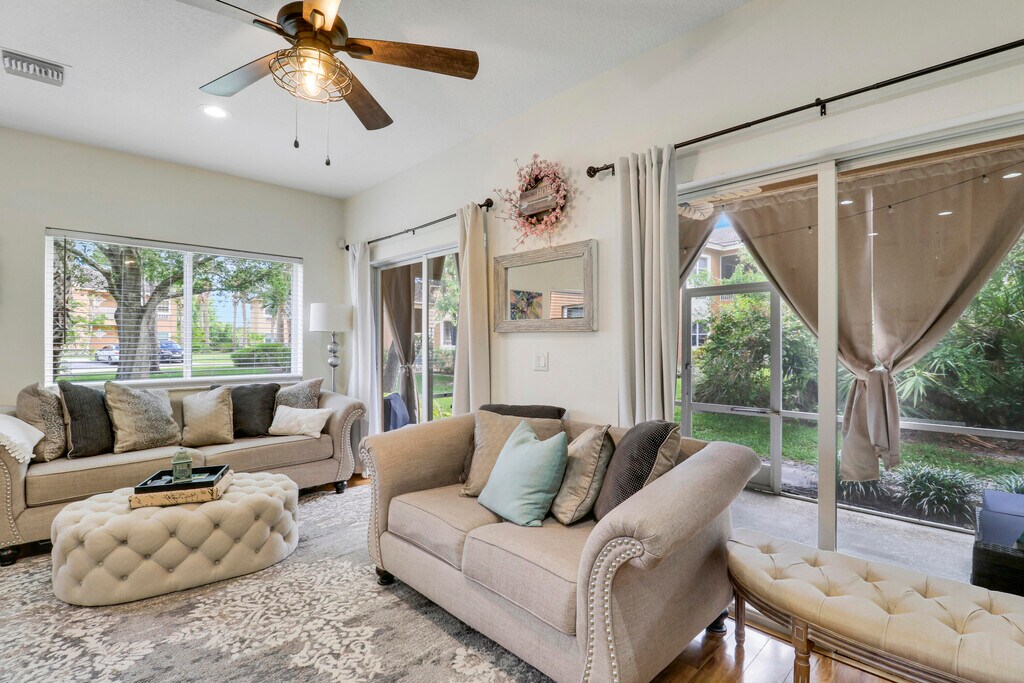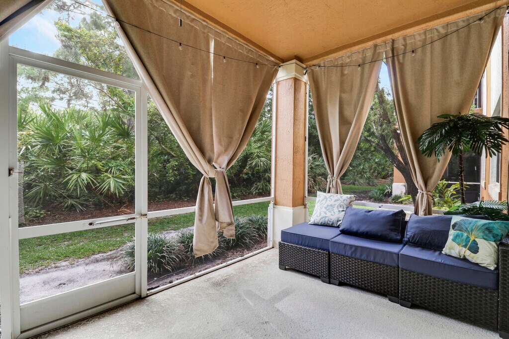 ANNUAL RENTAL OPPORTUNITY! This ground floor 1BR/1.5BA condo in Castle Pines is available fully furnished/turnkey. Thoughtful updates include hard surface flooring throughout,updated furnishings,large TVs,a cozy patio space,kitchen with SS appliances,full size washer & dryer and more! This corner unit has an additional window in the living space allowing for lots of natural light. The oversized bedroom suite has a walk-in closet and an ensuite with dual sinks and spacious shower. The screened and covered patio offers an outdoor area to enjoy. Tenants are responsible for the cost of electric but landlord provides water,sewer,internet and cable. Offered fully furnished/turnkey,just bring your suitcase and start enjoying the FL life style! Laundry access just outside the front door. Castle Pines is a guard gated community with a resort style pool. Conveniently located to PGA Golf Club,NY Mets Spring Training,shopping,dining,Tradition,beaches,interstates and more. Call today! MLS ID B26017450