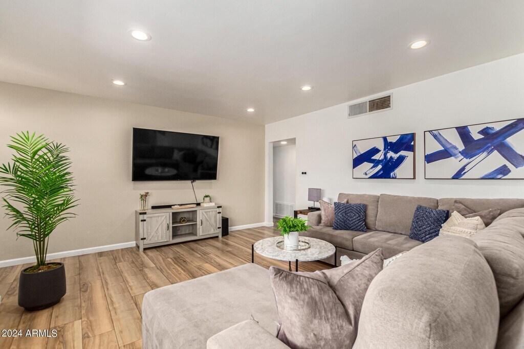 Situated near Old Town Scottsdale,this 3-bedroom,2-bathroom home offers a well-designed layout featuring two spacious living rooms and a versatile bonus room that can serve as a fourth bedroom. With modern finishes,this home blends comfort and style. Highlights include: stainless appliances,electric fireplace,roomy 2-car garage and a large laundry room. The backyard retreat offers a low maintenance yard with turf and a relaxing hot tub/spa. Experience the convenience of urban living in this charming home. Unfurnished and ready for immediate move-in.