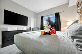 Feel at home in this well-appointed 1-bedroom condo, perfectly located near Orlando’s top attractions, just minutes from Disney, Universal, and SeaWorld. This condo sleeps up to 6 guests and features a full fridge, cooktop, dishwasher, microwave, toaster, waffle maker, electric kettle, espresso machine, drip coffee maker, single-serve K-Cup coffee maker, and a frozen drink maker. Cookware, dishware, silverware, hotel-quality linens, extra pillows, and hangers are provided. Enjoy the convenience of air conditioning and heating, complimentary coffee, and complimentary Wi-Fi. For entertainment, there is a 76-inch smart TV. Strollers can be rented on site for $60 for up to 4 days. Located in a well-maintained resort community, this condo is just 2 miles from Disney, 6 miles from Universal, and 3 miles from SeaWorld. The neighborhood is family-friendly and offers easy access to restaurants, shopping, grocery stores, and entertainment. Pets are not allowed. If cleaners determine smoking has taken place, whether by observation or smell, we reserve the right to charge a $250 penalty. If smoking is observed during the course of an active stay, we reserve the right to cancel the reservation without any refund and charge a $250 penalty. The booking guest must be at least 21 years of age to check-in. Security will request an ID upon arrival. Unauthorized late checkouts or early check-ins will result in a charge of $35 for every 30 minutes (rounded up). In the case of a lockout (except in the case of a lock dying due to batteries) we reserve the right to charge a $125 fee for helping gain re-entry. If the lockout is outside regular business hours (Mon – Fri, 8 AM - 8 PM) the fee will be $200. Unless requested and approved in advance in writing, any lethal weapons are not allowed on the property. A violation of this rule will result in immediate removal from the property along with no refund and a penalty of $250. If granted permission, the weapon must be licensed and safely secured at all times. [SI]