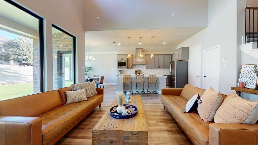 Located in the gated community of Harper’s Preserve,this stunning 4-bedroom,3.5-bath home offers a modern and refined living experience with a thoughtfully designed floor plan featuring two bedrooms downstairs,a flex room,and a rare 4-car garage with plenty of upgrades. You are welcomed with a grand entrance leading into a spacious great room highlighted by 20-foot ceilings,custom built-in cabinetry,and an elegant electric fireplace. The chef’s kitchen boasts upgraded cabinetry,a large quartz island,and premium finishes throughout. The primary suite offers a vaulted ceiling and a luxurious en-suite bath with his and hers sinks,a makeup vanity,and a walk-in closet. On the second floor,two additional bedrooms,a game room with built-in bench seating,and a convenient half bath. Enjoy the community's amenities,2 pools,2 clubhouses,parks,stocked ponds,and walking trails. Close to dining,shopping,groceries,and easy access to I-45. Inquire about the furnished option MLS# 70805360