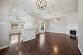 Move-in ready and full of charm! Situated on a spacious corner lot with a huge backyard, this beautifully updated 3-bed, 2-bath home offers a bright open floorplan and modern finishes throughout. Fresh interior paint and laminate flooring flow seamlessly from room to room. The kitchen shines with granite countertops, subway tile backsplash, gas range, and stylish hardware. Both bathrooms have been refreshed with quartz countertops, modern tile, and updated fixtures. Conveniently located near major highways, shopping, and dining — this home perfectly blends comfort, style, and location!