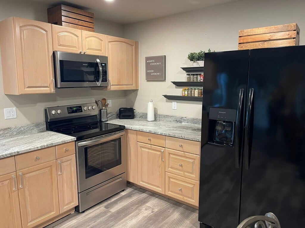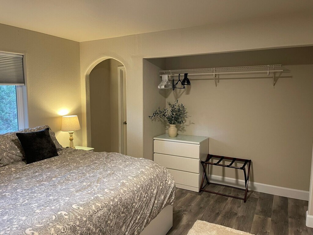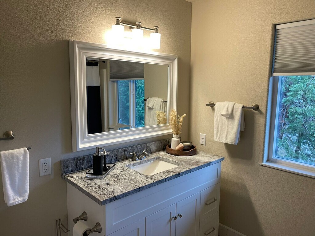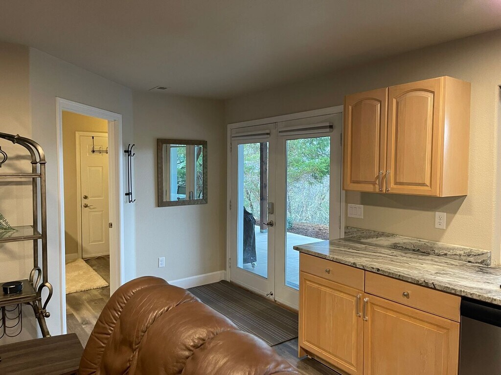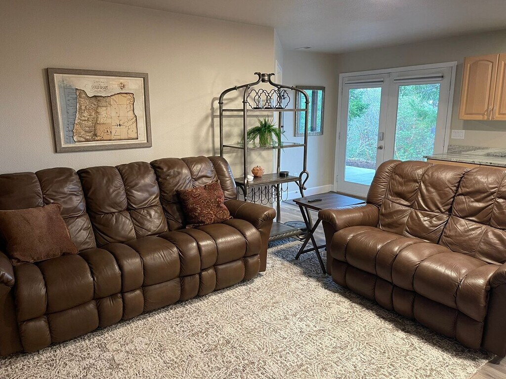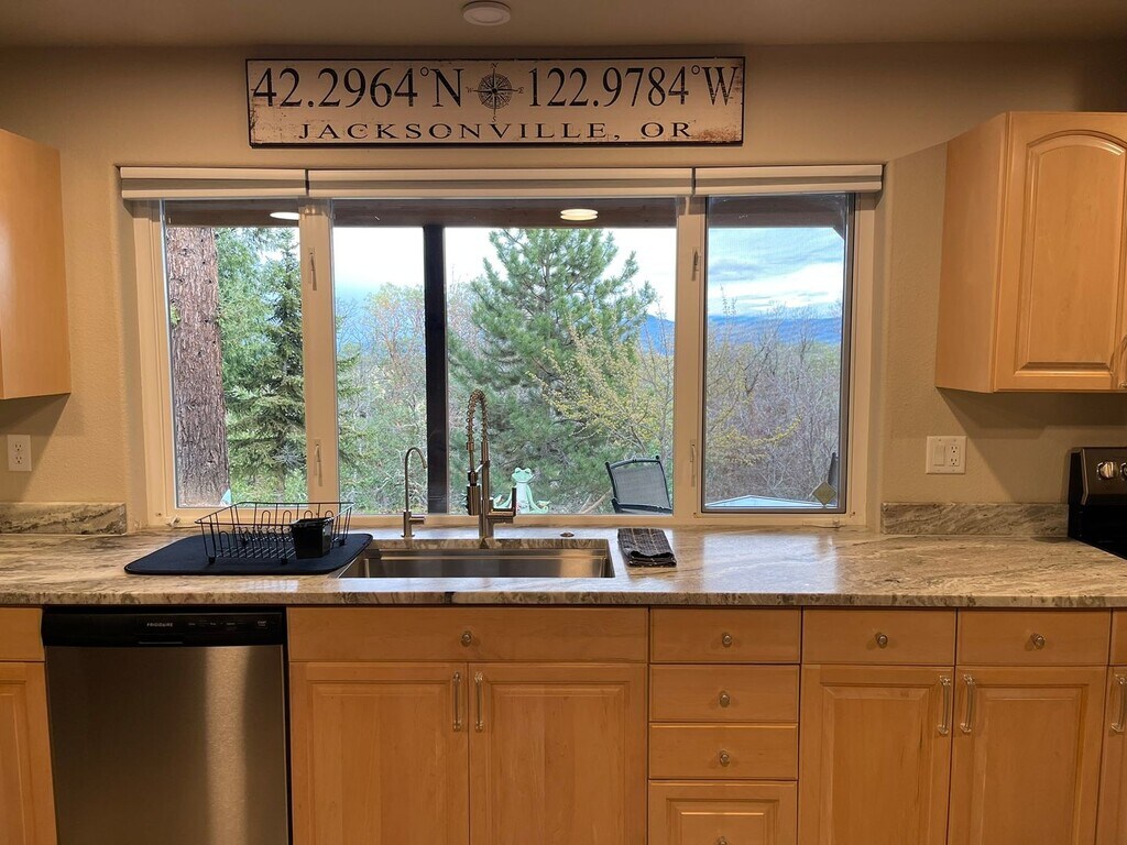 Fully Furnished Juanita Retreat: Don't miss this beautifully remodeled 2 bedroom, 1 bathroom home located in rural Jacksonville, OR. This spacious home boasts a stunning view of the valley, open floor plan, covered patio with a BBQ and seating for 4, and new landscaping. Enjoy the convenience of a washer/dryer, and built-in folding table. The brand new kitchen is perfect for preparing meals and entertaining. Stay connected with Wi-Fi and unwind with a Smart TV. With its rural location yet close proximity to downtown Jacksonville, this home offers the best of both worlds. Don't miss out on this opportunity to live in a peaceful and picturesque setting just 5 minutes from downtown Jacksonville! This home is the entire lower level of the house, the owner does occupy the first level occasionally, when they travel to Jacksonville. SHOWINGS are by photos only to avoid disturbing our guests. Tours available when vacant. COSTS: $300 utility fee pays for all utilities, plus streaming TV subscription, Wi-Fi, trash and landscaping. In addition, there is a $350 non refundable cleaning fee, a refundable security deposit equal to one month of rent, and a 3.5% monthly admin fee. Renters insurance required. No pets allowed SMOKING is not allowed in or around this property. A $350 fee will be charged if there is smoking in the home in addition to remediation expense. TENANT PAID UTILITIES None outside of the utility fee mentioned above unless unless they are over reasonable amount (this amount is stated in the Rental Agreement) APPLIANCES include; Stove/oven, Dishwasher, Microwave, A/C, Washer/Dryer. CALL us at to reserve.
