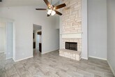 This charming gem was totally reconstructed in 2018. 831 offers two spacious bedrooms and two full bathrooms, offering ample space for comfortable living. The home is beautifully accented with ceramic tile flooring, adding a touch of elegance to the overall aesthetic. The private patio is a perfect spot for outdoor relaxation, while the stone wood-burning fireplace provides a cozy ambiance during cooler evenings. As a resident of Creekside Townhomes, you'll also have access to the community pool, a fantastic amenity for those warm Texas summers. No Pets**No BLIND applications**