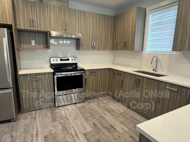 Address: 4-831 Wilson Ave, Kelowna BC Rent: $2700 + Utilities (FortisBC Gas & Electric) Availability: March 15th Property Overview: This modern 3-bedroom, 2.5 bathroom home in a fourplex. Conveniently located in North Kelowna close to the downtown sector. This perfectly situated back unit has direct access to your shared garage from your back door for added convenience. Layout: - Living Space: The bright and open concept main floor includes a large living room with electric built-in fireplace, powder room and added storage space under the stairs. - Kitchen: The high-end kitchen has a large island for cooking, stainless steel appliances, and sleek European cabinetry with an abundance of cupboard space. - Bedrooms: All three bedrooms are located upstairs. Each bedroom has a closet and a window. The primary bedroom has an ensuite bathroom with a bathtub-shower combination - Bathrooms: The bright primary bedroom has an ensuite bathroom. The two other rooms share a second full bathroom with a bathtub-shower combination. One half bath located on the main level. - Outdoor Space: The lovely outside space is fenced with pavers and landscaping (no grass) for entertaining. The large patio includes a gas hook up for a BBQ or fire pit. - Parking: One assigned parking stall in a shared garage. This garage is shared with all four units and is located at the back of the property. Location Highlights: - Situated in Kelowna North, this popular location is only a short walk to the downtown core which includes the cultural district, restaurants, shopping, parks, the beach and more. - Walking distance to Bankhead Elementary school and conveniently located near transit links to high school, college and university. If biking is a preferred means of transportation, Kelowna’s main bike corridors are only steps away. - Built for rental purposes, you will have peace of mind knowing that the home won't go for sale or that you'll be asked to move out. Perfect for long term tenants who want to settle in! Restrictions & Requirements: 1. Credit & reference checks 2. Tenant insurance 3. Security deposit 4. Minimum 1 Year Lease 5. Pets may be considered - subject to owner approval 6. No smoking of any sort allowed on property. Visit our website to see video, more information and to book a showing: Aoife O'Neill PREC* Senior Property Manager, The Agency Kelowna Email: 3381 Lakeshore Rd,Kelowna, BC V1W 3S9 **This property is advertised by Aoife O'Neill Personal Real Estate Corporation, a Licensed Property Manager with The Agency Kelowna, as agent for the property owner.**