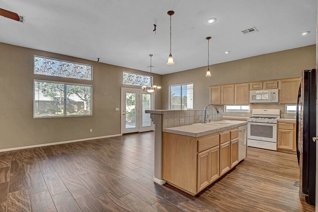Stunning 3 bedroom single story in the NW! Open floor plan with tile floors throughout. Vaulted ceilings, ceiling fans throughout, and a 3 car garage. Backyard features large patio, lush landscaping, and outdoor fire pit. Large sized bedrooms! An absolute must see!