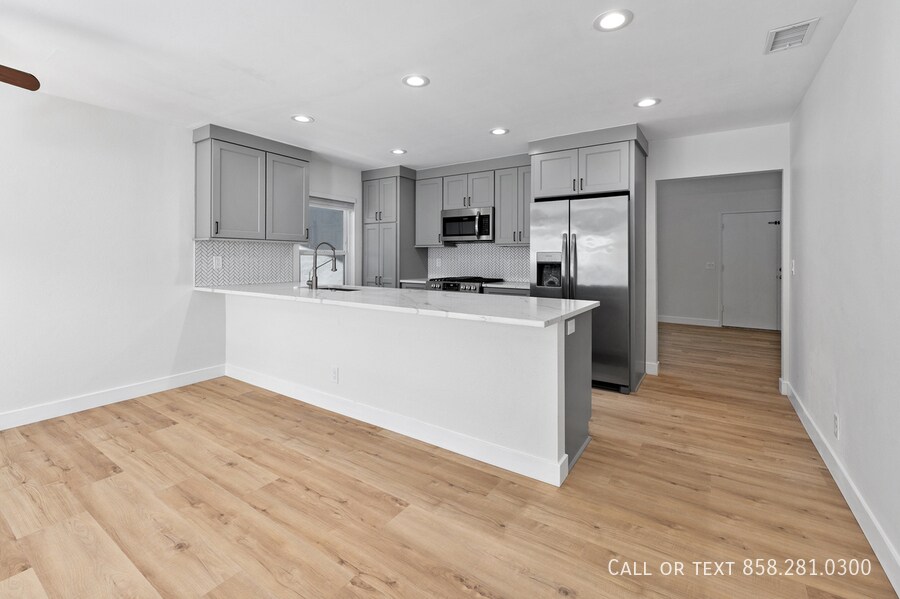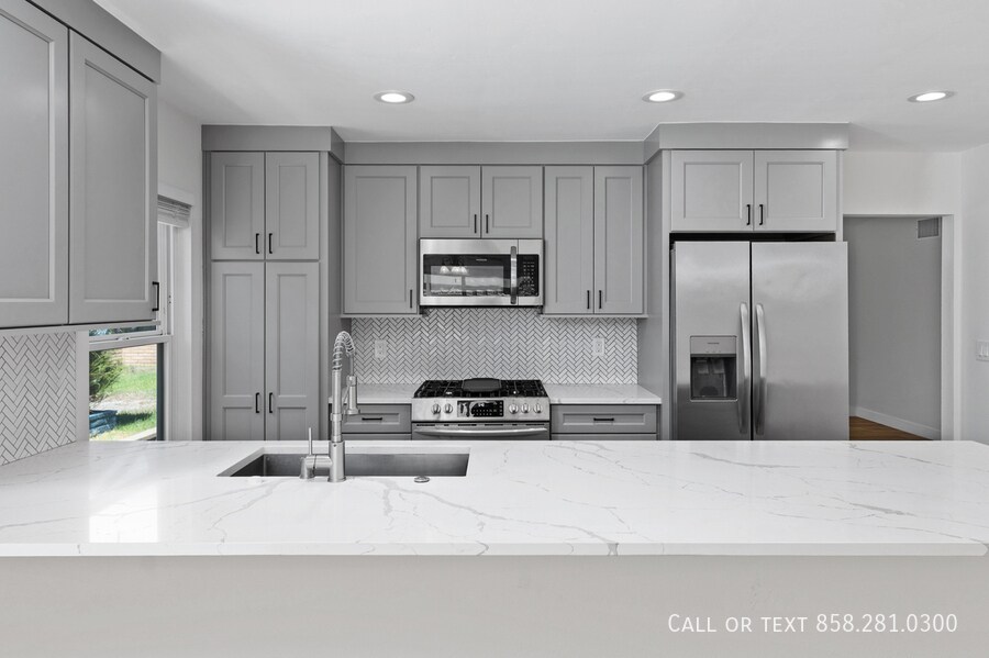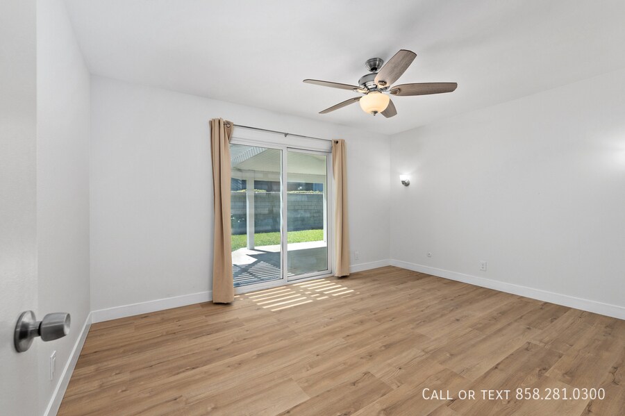 Welcome to this beautifully maintained and updated 4-bedroom, 2-bath single-story home in the heart of Mira Mesa. The light and bright kitchen features quartz countertops, a peninsula, recessed lighting, and newer stainless steel appliances. The dining area opens directly to the backyard—perfect for indoor-outdoor living. Enjoy vaulted ceilings and a cozy brick fireplace in the living room, along with ceiling fans in every bedroom and the family room. The freshly painted interior and exterior give the home a clean, modern feel. The primary bedroom offers an en suite bathroom for added comfort and convenience. Additional features include central heat and air, a whole house fan, a newer roof, and a custom outdoor pergola. Easy access to I-15, I-805, and Hwy-56, and close to parks, restaurants, shopping, and coffee shops. View this fabulous move-in-ready home today!