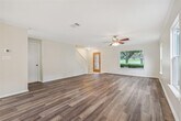 This remodeled 4-bedroom home seamlessly blends modern elegance with practical comfort. This wonderful home comes partially furnished, and is great for someone looking for a quick and easy move-in. The kitchen features stunning quartz countertops that exude both style and durability. A spacious center island is at its heart, perfect for meal preparation and casual gatherings. Adjacent to the island, a cozy breakfast area accommodates a stylish table and seating for leisurely morning meals. The practical design makes this kitchen a warm and inviting hub for culinary activities and family moments. The primary bedroom is exceptionally spacious, providing ample room for both rest and productivity. Large windows let in abundant natural light, creating a bright, airy atmosphere. Huge Pella windows are prominent throughout the home, ensuring every room is bathed in natural light and offering picturesque views of the surroundings. The home also includes a private backyard with a wooden deck, perfect for entertaining or relaxing outdoors. This combination of luxurious indoor spaces and inviting outdoor areas makes the home ideal for everyday living and hosting gatherings.