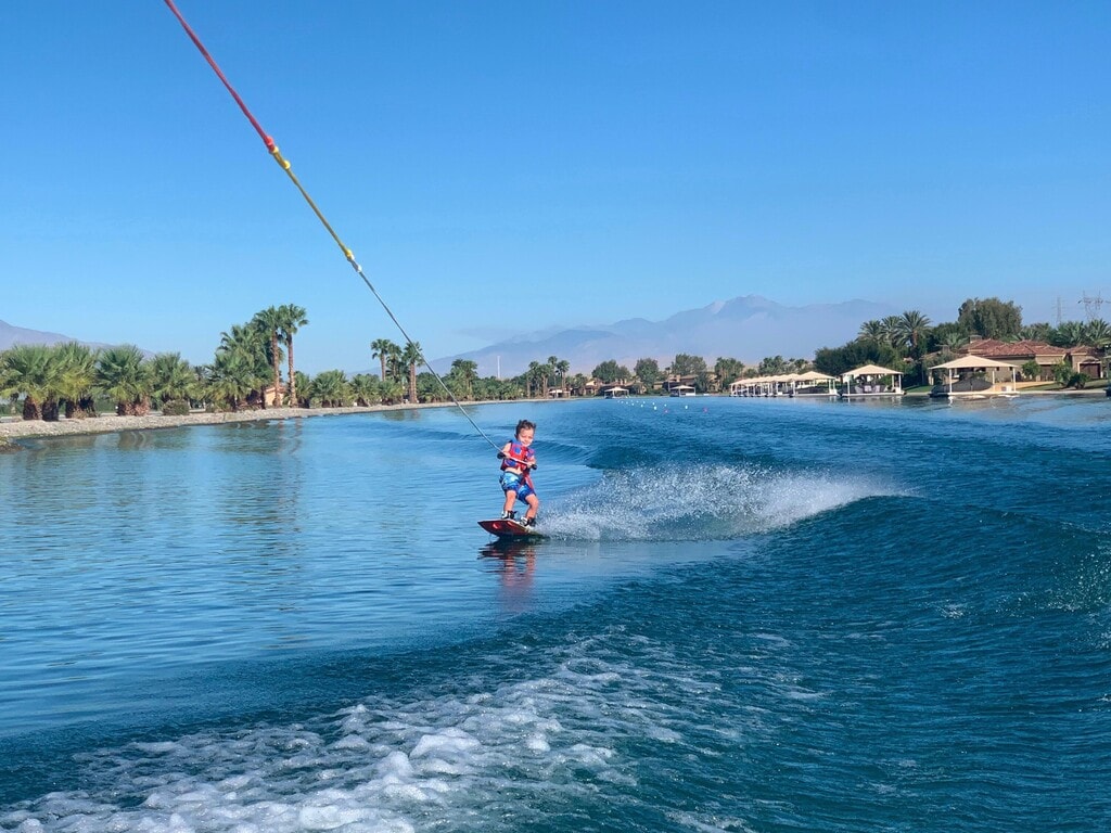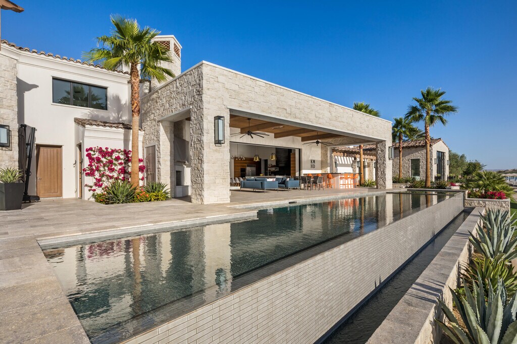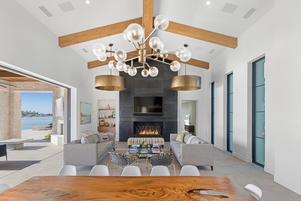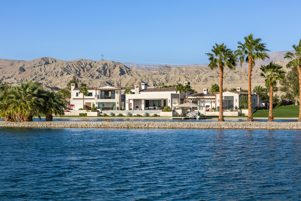 This luxury escape is a unique vacation home,available fully furnished & ready for you to enjoy. This home boasts its own private beach & boat dock,six oversized en-suite bedrooms,upstairs playroom,gym & an infinity pool,all overlooking a water sport lake . The perfect outdoor setting,Shadow Lake Estates is nestled in the base of the Indio hills with an expansive southern view of the entire Coachella Valley through its broad windows & panoramic backyard. This smart modern home has high ceilings,motorized shades,& a minimalist feel,but at just under 7000 sqft it still feels comfortable. With a large fireplace in the living room,an island kitchen fit for royalty,& floor to ceiling windows that slide back to open up the house to the rising morning sun shimmering off the lake. Get out of the city & find yourself back in the elements,on the water during a winter that averages daily highs of 70°. Go hiking in the nearby hills,drive 20 min to Palm Springs & have a night out! Or,wait for the annual Coachella Music & Arts Festival,stay 15 min away from the venue in a spacious lake house perfect for pool parties & BBQs on the dock! This home is a one of a kind getaway,you won't find anything like it in all of Southern California.