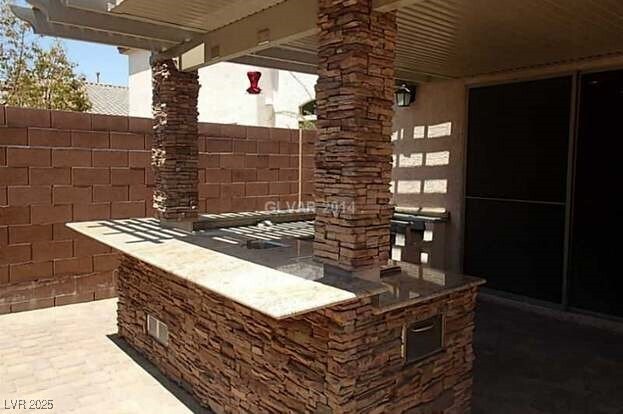 Immaculate open floor plan w/ HUGE great room. Chefs kitchen w/ granite counter top & wood flooring through out. Beautiful pergola courtyard entrance w/ crushed glass gas fire pit. Large master bath + walk in closet & double sinks. Laundry w/ sink & extra cabinets. 4th bedroom can be den. Back into Mountains Edge Regional park. Five minutes from Doral Academy Charter school.