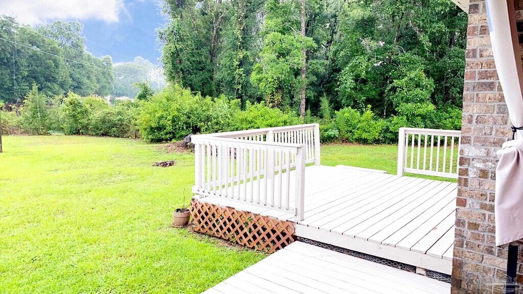 Fabulous custom built home! ~ Open floor plan features: Large Living Room with Luxury Vinyl Plank Flooring,High Ceilings and Fireplace (as-is) ~ Kitchen has Tile Floors,eat-in Breakfast Area,Breakfast Bar and Stainless Steel Appliances,Gas Stove and Pantry ~ Formal Dining Room with Vinyl Plank Flooring ~ Spacious Master Bedroom w/ Vinyl Plank Flooring and Bathroom with 2 separate Vanities,huge Jacuzzi Tub,custom separate Shower with multiple nozzles,2 walk-in closets ~ 3 more oversized Bedrooms with additional 1 1/2 Guest Baths ~ Large Office that could also be used as a 5th Bedroom if needed ~ Large Laundry Room ~ Backyard is very large ~ Beautiful deck off of back patio Desirable location - less that 5 min to I-10,20 to UWF,20 to Cordova Mall/Airport,25-30 to NAS/Corry Station & 30 to Pensacola Beach/Perdido Key **** Please verify all features and dimensions prior to applying or placing a deposit on the home if there are specific items that are important to you *** All of our homes are in very good condition and clean – please give us an opportunity to show you excellent customer service!