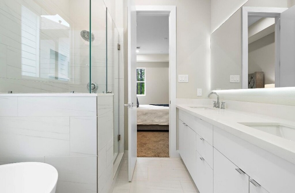 This is a new construction three-bedroom, 2.5-bathroom home in the Greater Independence Heights Area. Located 9 minutes from Downtown Houston, the home offers easy access to the Inner 610 Loop amenities and green spaces. The home features an open floor plan with a high ceiling, with the living room, kitchen, and dining area flowing seamlessly together. The home boasts vinyl plank flooring throughout the living areas, providing a durable and low-maintenance option for a busy family. The kitchen has modern appliances and ample counter space, perfect for cooking and entertaining. Luxurious primary bathroom with a walk-in shower with a bench, perfect for unwinding after a long day. The primary bedroom also features a large walk-in closet, providing ample storage space for clothes and personal items. The easy-to-maintain backyard is great for grilling with friends or playing with your pets. This home is in a gated community, offering added security and privacy.