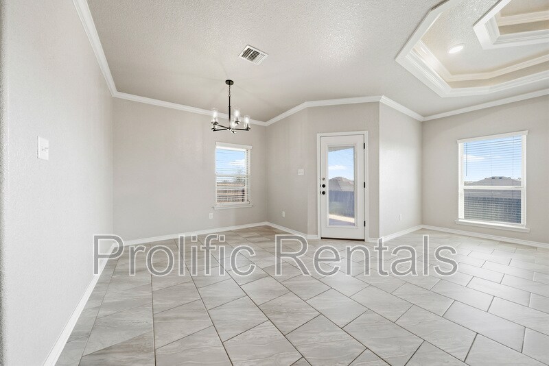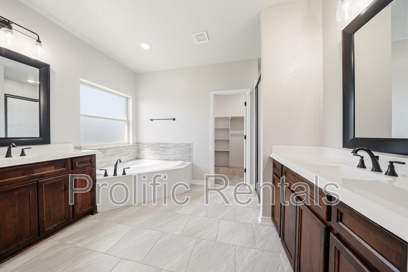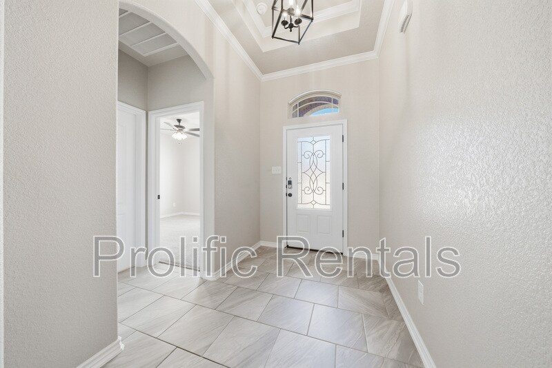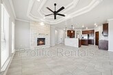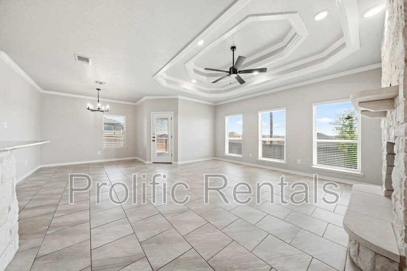 This stunning, modern home offers upscale finishes, spacious design, and exceptional comfort in a prime Killeen location. Inside, you'll find an open-concept layout with beautiful tile flooring throughout the main living areas, soaring ceilings, and abundant natural light. The living room features a striking floor-to-ceiling stone fireplace and a custom tray ceiling with recessed lighting and a ceiling fan, creating a perfect blend of luxury and comfort. The kitchen is designed for both functionality and style, complete with granite countertops throughout, a large center island, custom dark wood cabinetry, stainless steel appliances, and a modern tile backsplash, all flowing seamlessly into the living and dining areas. The primary suite is generously sized and includes a spa-like bathroom with dual vanities, a garden soaking tub, a separate glass walk-in shower with custom tile, and a large walk-in closet with built-in shelving. Additional features include spacious secondary bedrooms with carpet and ceiling fans, updated bathrooms with modern finishes, and a dedicated laundry room with cabinetry and a sink. The exterior offers a three-car garage, a covered back patio, and a private fenced yard, perfect for relaxing or entertaining. Conveniently located near I-14/US-190, this home provides easy access to Fort Cavazos, major hospitals, schools within Killeen ISD, and a variety of shopping, dining, and everyday conveniences.
