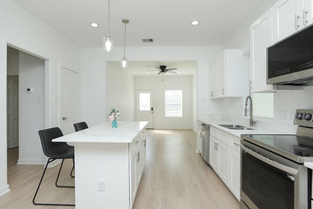 Built in 2023, this three bedrooms and two full bathrooms home includes an open-concept layout that fills the living spaces with natural light. The kitchen flows into the family room. The primary suite features a spacious design with its own private bath, while the secondary bedrooms are also roomy. Durable flooring runs throughout the home, and washer and dryer are included. Situated on a generous lot, the property offers yard space. With easy access to major highways and just minutes from Downtown Houston and the East End, this home combines comfort, convenience, and modern design in one inviting package. *Online apps only, please submit all required documents at time of application** **$100,000 Liability to Landlord Insurance Policy Required** Once pre-approved, applicant will need to create a profile with our 3rd party vendor PetScreening