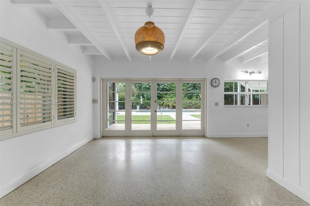 Charming 3-bedroom, 2-bath home in Pinecrest, offering 1,312 sq ft of living space. Bright interiors feature terrazzo floors, wood-beamed ceilings, and an updated kitchen with white cabinetry, granite counters, and stainless steel appliances. French doors open to a spacious backyard with a salt-chlorinated pool and lush landscaping – ideal for entertaining or relaxing. Pool maintenance is included for worry-free living. Located in one of Pinecrest’s most desirable neighborhoods with top-rated schools nearby.