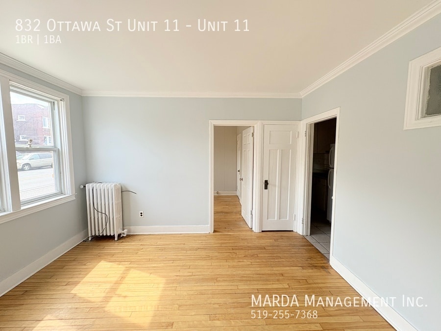 Prime Location 1 Bedroom Apartment on Ottawa Street - Your Ideal Windsor Home Awaits! Welcome to 832 Ottawa Street, where convenience meets comfort in this charming 1 bedroom, 1 bathroom apartment situated in the heart of Windsor's bustling Ottawa Street district. Enjoy the convenience of a prime location with the front door right on Ottawa Street. This vibrant neighbourhood offers easy access to a myriad of amenities including stores, restaurants, shops, and more, ensuring you have everything you need right at your doorstep. Step into the inviting living room flooded with natural light, providing a bright and airy space for relaxation and entertainment. A closet adds functionality and storage convenience to the room. To the left of the living room, you'll find the cozy bedroom, offering a peaceful retreat for rest and rejuvenation after a long day. Complete with a closet, the bedroom provides ample storage space for your belongings. The apartment features a nice row kitchen equipped with ample countertop space and cabinets, making meal preparation a breeze. Adjacent to the kitchen, you'll discover a spacious 4-piece bathroom with an updated vanity, providing both style and functionality. Tenant responsible for hydro. First and last months rent and a credit check are required. Professionally managed by MARDA Management, offering 24/7 maintenance support and easy rent payment options. Call MARDA MANAGEMENT today at or email to schedule your viewing! Cable Hookup Ready Coin Operated Laundry Freshly Painted No Smoking Allowed Pet Friendly