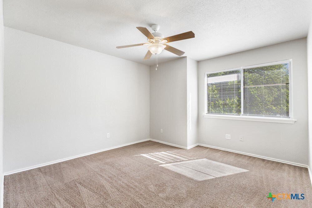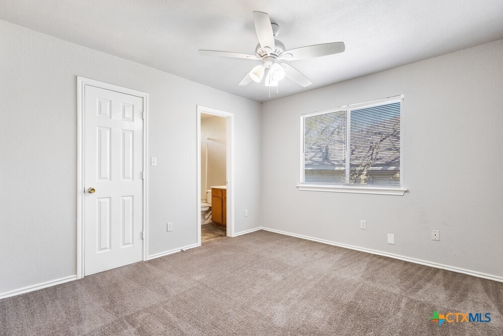 Cozy 2-Story Duplex with 2 car garage-Tucked Away in San Marcos & Located less than 5 minutes from Texas State University,this spacious two-story duplex offers the perfect blend of comfort,convenience,and functionality. Featuring 3 bedrooms and 3.5 bathrooms,each upstairs bedroom includes its own private en-suite bath,walk-in closet,and ceiling fan—ideal for added privacy. The downstairs boasts durable tile flooring throughout and an open-concept layout. The eat-in kitchen is equipped with a stove/oven,vent hood,refrigerator,and dishwasher,and overlooks a generously sized living area—perfect for relaxing or entertaining. A convenient half bath and separate laundry room are located just off the kitchen. Step outside to enjoy a private backyard with a patio slab,offering a great space for outdoor gatherings or quiet evenings. Ideally situated,this home is also just under 10 minutes from Ringtail Ridge Natural Area and less than 15 minutes from San Marcos Premium Outlets,providing easy access to shopping,dining,and outdoor recreation. Move-in ready with an unbeatable location—don’t miss out!