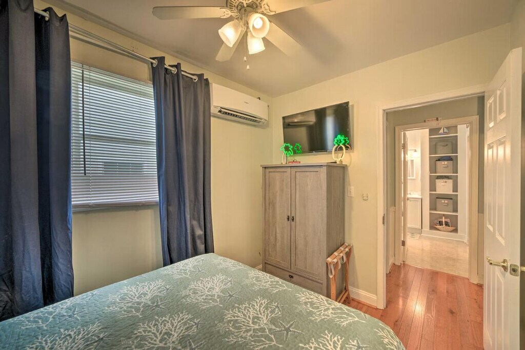 Escape to Chesapeake Beach and feel at home in this 2-bedroom cottage. This seaside getaway features a well equipped kitchen with cooking basics and spices, a coffee maker, and a toaster. Enjoy the convenience of linens, towels, complimentary toiletries, trash bags, paper towels, an iron, an ironing board, a washer, a dryer, central heating, air conditioning, and free Wi-Fi. Entertainment is provided by 2 flat-screen smart TVs. Pets are welcome with a fee of $50. Lounge in the private, partially fenced-in backyard, on the beach, or visit local attractions. The yard is not completely fenced-in, and pets are not able to run freely without supervision. [SI]