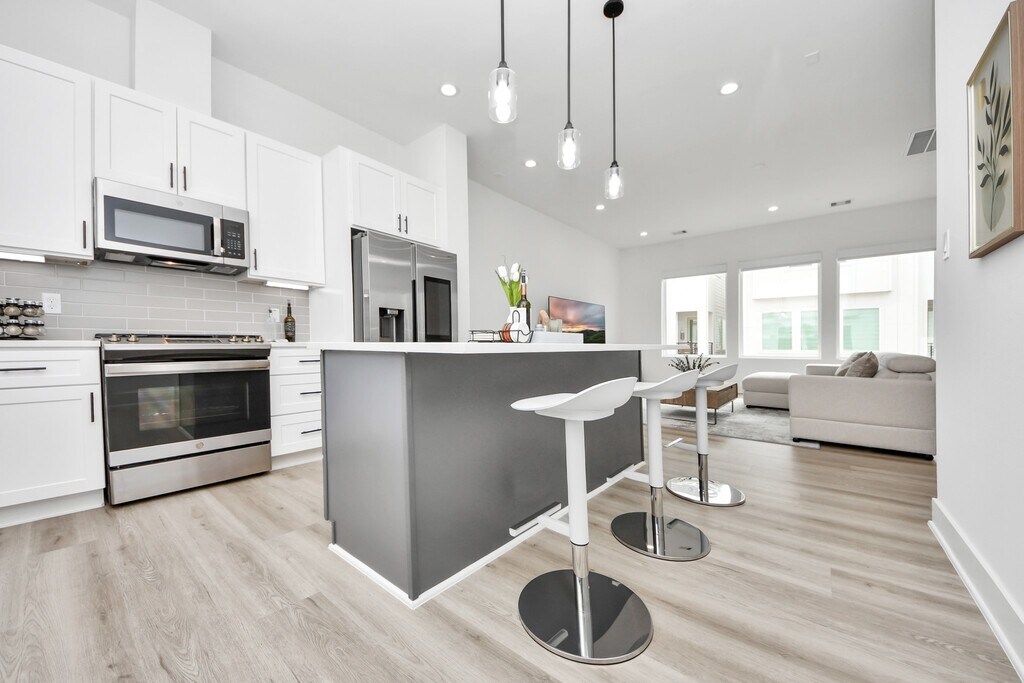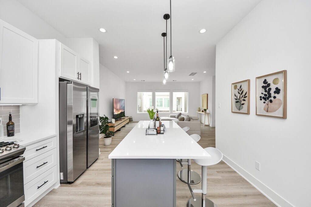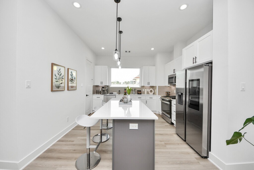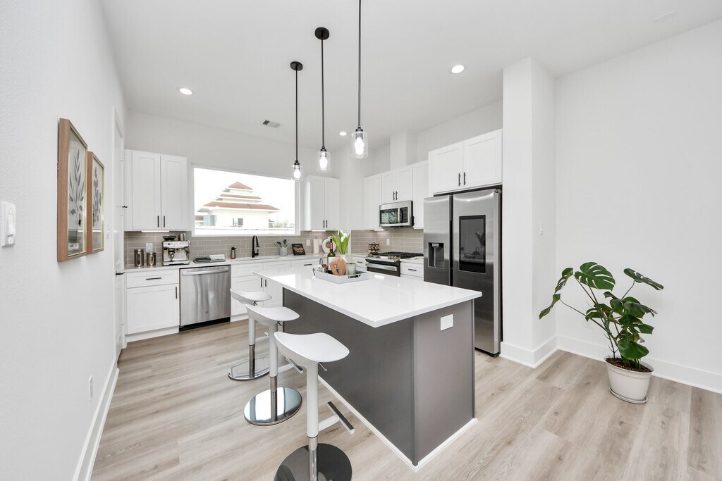 This property feels like NEW in a private Spring Branch gated community! Hardly lived in,beautiful 3-bedroom,3.5-bath contemporary home featuring an open-concept second-floor living area with high ceilings and designer finishes throughout. The chef’s kitchen offers an oversized island,quartz countertops,shaker cabinets,and stainless steel appliances,flowing seamlessly into the living space and private balcony. Smart home features include motorized control window blinds,CAT-5 wiring,pre-wired surround sound,WiFi-controlled thermostat,upgraded light switches,and garage access,plus TV/internet connections in every room. Private fenced backyard,wide 28-ft streets,controlled gate access and ample guest parking. Conveniently located minutes from CityCentre,Energy Corridor,and Downtown Houston. Schedule your showing today! MLS# 36213191