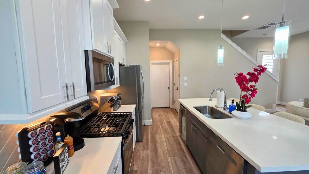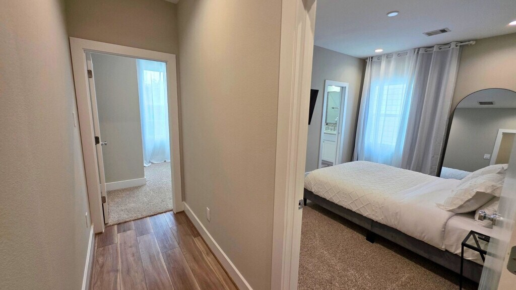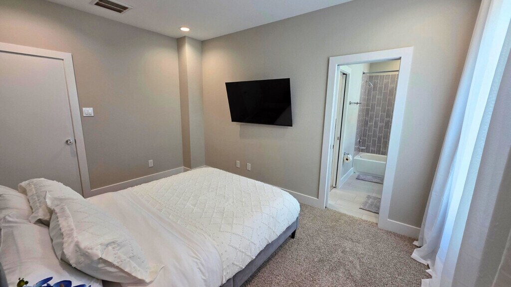 Unwind in style at this beautifully furnished 3-bedroom, 2-bath home designed for comfort and convenience. Perfectly suited for families, business travelers, or groups, this space features a king bed in the primary suite and queen beds in each additional room. Smart TVs are available in every bedroom and the living room, allowing everyone to stream and relax in their own space. Enjoy fast Wi-Fi, a fully equipped kitchen, and a spacious layout ideal for short-term or extended stays. Conveniently located near major highways, this home offers easy access to downtown Houston, local attractions, and the airport. Whether you're visiting for work or play, you'll find everything you need for a seamless stay. Smoking inside the home is prohibited and will incur a $250 fee for any evidence of smoking indoors. No parties or events are allowed, and quiet hours are from 10 PM to 7 AM to respect neighbors. Only registered guests are allowed on the property, and the guest count must be accurate. Unauthorized guests or unapproved overnight visitors may result in additional charges or immediate removal from the property without refund. No pets are allowed unless approved in advance, with a $150 fee for unauthorized pets. Treat the home with care by keeping the space clean, not moving or removing furniture or décor, and reporting any damages promptly. Trash must be disposed of properly in the designated bins. Check-out is by 11:00 AM, and late check-outs may result in fees unless approved ahead of time. Smart TVs are available for guest use, and guests should log out of their streaming accounts before departure. Failure to follow these rules may result in penalties, cancellation of your reservation, and/or removal without refund.