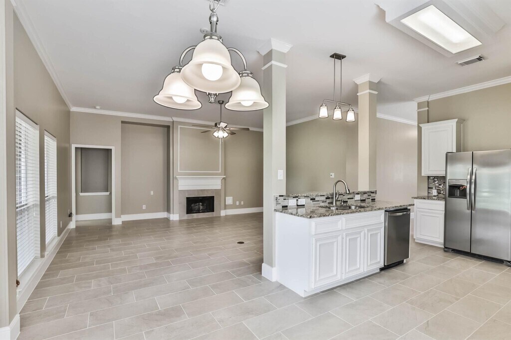 Nestled in the prestigious Walden on Lake Houston community,this charming single-story home offers breathtaking views of the private golf course and serene lakes. The open floor plan features a cozy gas log fireplace,soaring ceilings,and a seamless flow to the living area. Enjoy elegant meals in the formal dining room,perfect for family gatherings and holidays. A dedicated home office provides the ideal space for remote work. The spacious kitchen boasts stainless steel appliances and a walk-in pantry. The primary suite offers dual sinks,a vanity,a jacuzzi tub,and a walk-in closet. With beautiful tile and wood flooring throughout—no carpet—this move-in-ready home is a true gem! Refrigerator shown in photos has been removed and will not be included with the lease. MLS# 89484913
