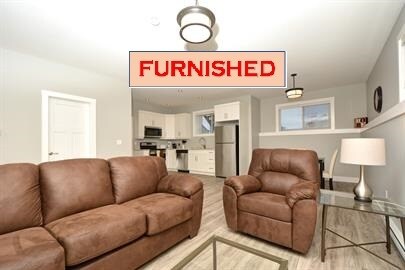 FURNISHED modern 2-bedroom suite offers everything you need; kitchenware, linens and Wi-Fi. This contemporary duplex suite features 9ft ceilings, in-suite laundry, and off-road parking. Lease options can include utilities and housekeeping. Tenants responsible for tenant insurance. Please apply online with Izon Realty: