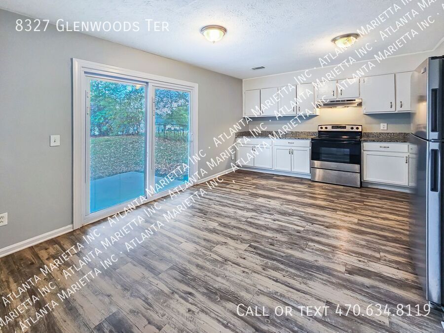 Available January 1, 2026 - This beautifully updated duplex is located in the quiet Glenwoods community in Riverdale, with quick access to Hwy 138, I-85, and I-75—making travel to downtown Atlanta, Hartsfield-Jackson Airport, Jonesboro, and South Atlanta convenient and easy. Situated on a spacious, level lot, the home offers a large parking pad and a fenced backyard. The exterior features winter-white brick with rich brown wood trim, creating attractive curb appeal. Inside, the home has luxury laminate flooring throughout, soft gray walls with crisp white trim, window blinds, updated lighting, and a clean, modern feel. The bright, open living room welcomes you with a large picture window that fills the space with natural light. The eat-in kitchen includes stainless steel appliances, granite countertops, ample white cabinetry, a pantry, and space for a dining table. Sliding doors open to a private porch—ideal for grilling or relaxing outdoors. A laundry closet with a full-size washer and dryer is conveniently located just off the kitchen. Down the hallway are two generously sized bedrooms and a full hall bathroom with a shower/tub combination and a new vanity. The oversized primary bedroom features a walk-in closet and a private half bath with updated vanity and lighting. VASH and Housing Vouchers are accepted. Tenant is responsible for all utilities and trash. We are seeking qualified, long-term residents. Applications and rental requirements are available on our website. All Electric Pets Under 25 Lbs Allowed $65/Mo Per Pet Tenant Pays All Utiltiies White Cabinets Window Blinds