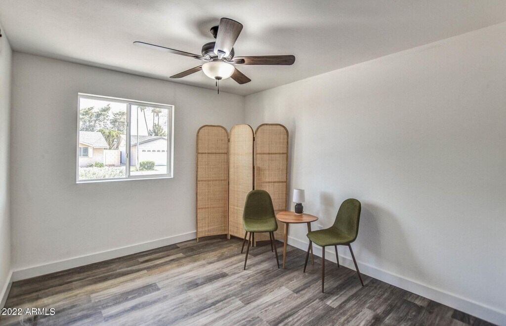 Stunning South Scottsdale rental -- fully renovated in 2021! This move-in ready home features a wide-open floor plan with modern finishes throughout: wood-look plank flooring,a designer kitchen with quartz countertops,subway tile backsplash,white shaker cabinets,stainless steel appliances & island seating,plus stylish bathrooms with matte black fixtures. The great room showcases a striking accent wall. Huge laundry room! All appliances included -- fridge,washer/dryer & wine fridge. Step outside to an oversized covered patio and a spacious backyard. No HOA. Prime location: 5 mi to ASU,4 mi to Scottsdale Fashion Square,15 min to Sky Harbor,with easy 101/202 freeway access. Available June 1.