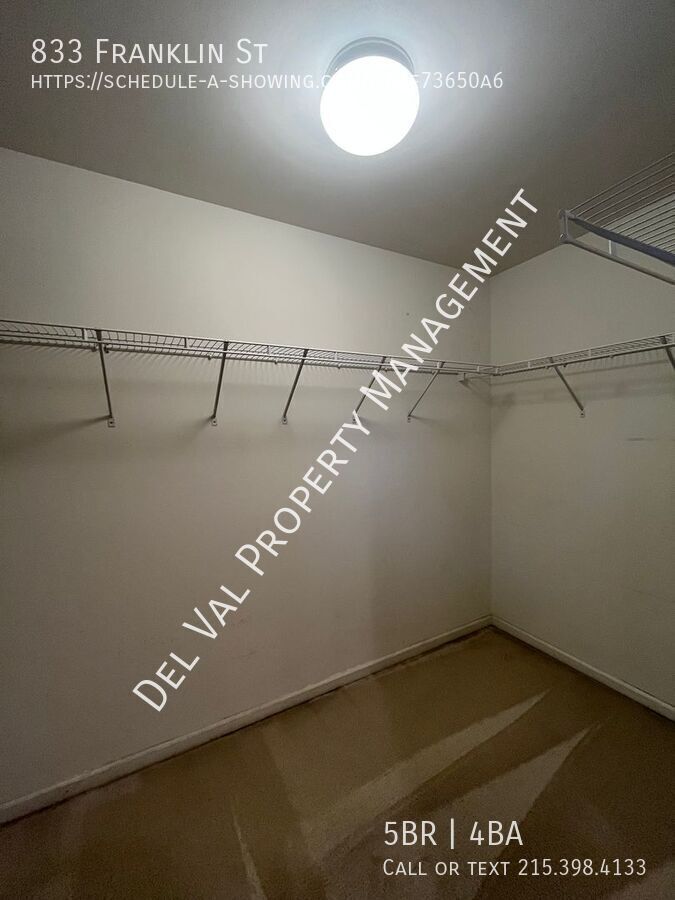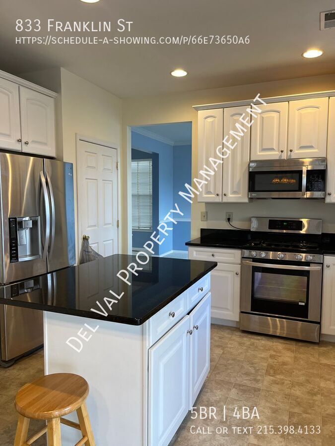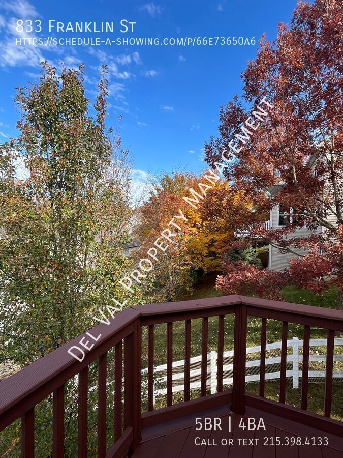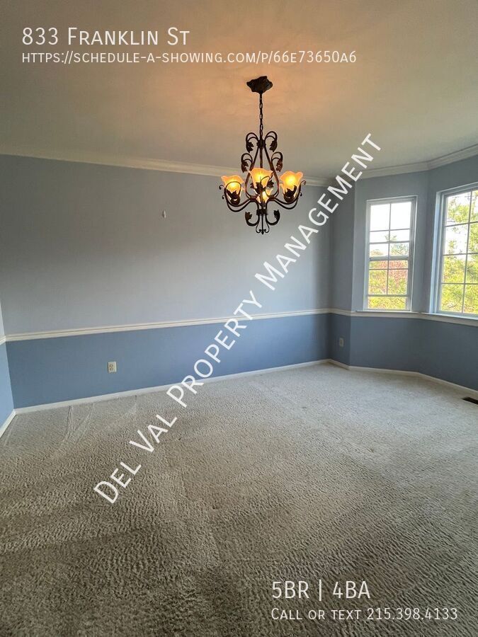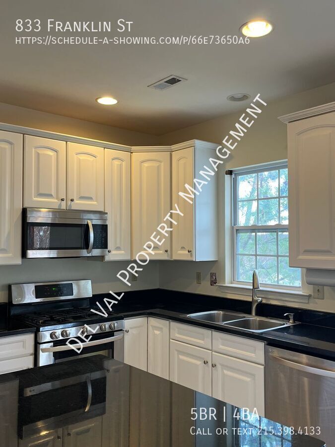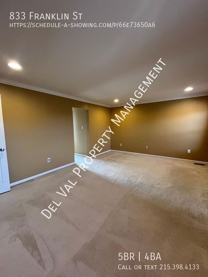 833 Franklin Street, Coatesville, PA 19320 $3,315/month, Available Now, Tenant pays all utilities, Landscaping & snow removal tenant responsibility, Trash included. Pets considered with owner approval. Welcome home to this stunning 5-bedroom, 3.5-bath property that perfectly combines modern comfort, open-concept living, and an entertainer’s dream layout. This spacious home offers style, function, and beautiful surroundings—ideal for everyday living or hosting friends and family this holiday season. Step into a bright, open floor plan with a sunny living and dining area, perfect for entertaining. The modern kitchen features stainless steel appliances and opens to a cozy lounge area complete with a fireplace and built-in sound system—a perfect spot for relaxing or entertaining. Enjoy the outdoors on your huge deck overlooking lush greenery, ideal for morning coffee or weekend get-togethers. A half bath and laundry area are conveniently located on the main level, with direct access to the attached garage. Upstairs, you’ll find four spacious bedrooms, including a gorgeous primary suite with two walk-in closets and a spa-like ensuite bathroom featuring a jetted soaking tub, steam shower, and dual vanity. The finished lower level includes a full bath, washer and dryer, full kitchenette (with dishwasher), and private deck perfect as a guest suite or in-law setup. Home Highlights 5 Bedrooms, 3.5 Bathrooms Open-Concept Living & Dining Areas Stainless Steel Kitchen Appliances Fireplace & Built-In Sound System Expansive Deck with Scenic Views Finished Lower Level with Kitchenette & Private Deck Spa-Like Primary Suite with Steam Shower & Soaking Tub Attached Garage + Laundry Areas on Two Levels Bright, Spacious Interior with Modern Comforts Additional Details Application fee: $65 per applicant Pets: Considered with owner approval (+pet deposit) Management: Del Val Realty & Property Management Schedule your showing today! Call or visit to apply or schedule a private tour. Listed by: Del Val Realty & Property Management 49 E. Lancaster Avenue, Suite 300, Malvern, PA 19355 Trash