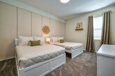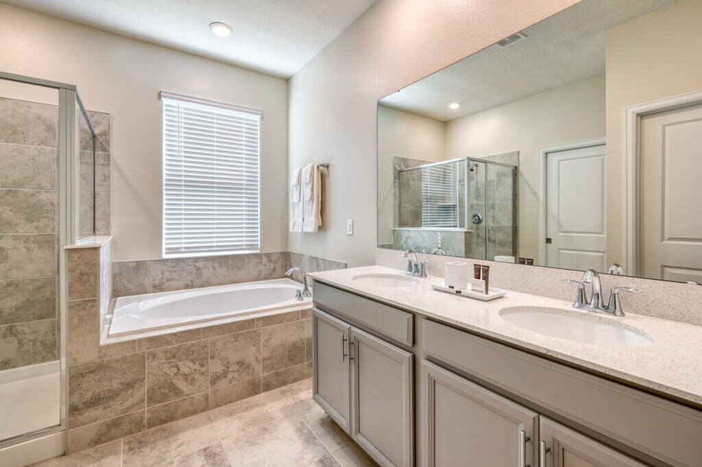 Discover this exquisite 3-bedroom condo, meticulously designed for comfort and style. Unwind in the spacious living room that seamlessly flows into the fully equipped kitchen and dining area. With the capacity to accommodate up to 11 guests, this haven boasts an enchanting Mickey-themed bedroom. Take a moment to relax on the balcony and soak in the views. Situated in the heart of Champions Gate, this condo provides unparalleled access to resort amenities including pools, a lazy river, and a fitness center, guaranteeing an unforgettable and cherished stay. Indulge in the charm of this elegant and spacious 3-bedroom, 2-bathroom condo. The lavish living room seamlessly blends with a fully equipped kitchen and dining space, comfortably accommodating up to 11 guests. Discover the luxury of the king bedroom suite, immerse in the enchantment of the Mickey-themed room with a double bed and a single bed, and find relaxation in the third spacious bedroom featuring two double beds and two single trundle beds, sharing a bathroom. Take in picturesque views from the balcony. This condo is complete with a laundry room, complimentary Wi-Fi, parking, and a thoughtful welcome kit, ensuring a comfortable and delightful stay. Champions Gate Resort is a resort-style community that offers every imaginable amenity for a blissful stay. It features an impressive clubhouse with a variety of courts and outdoor activities like tennis, beach volleyball, and a golf course, while its restaurant and fitness center will help you stay refreshed and fit. Its swimming pool complex is perfect for a splashy day, with slides, a lazy river, and a kids splash pool. Plus, the resort is just 20 minutes away from Disney Parks, ensuring plenty of opportunities for fun and adventure. Shopping, dining, and entertainment are also within reach, with stores, restaurants, and supermarkets nearby. It's the perfect place for a family getaway; come and experience all the perks of Champions Gate Resort! Quiet hours are between 22:00 and 8:00. Replenishment of bathroom and kitchen amenities is the guest's responsibility. [SI]