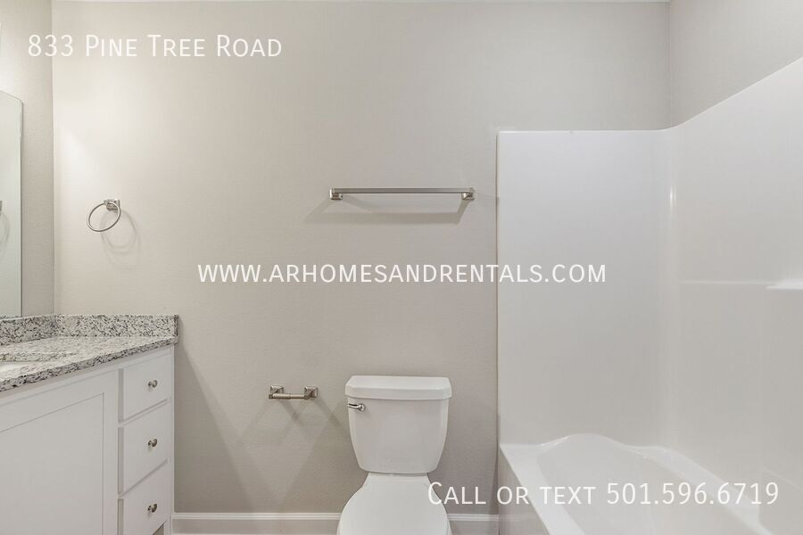 833 Pine Tree Road Jacksonville, AR 72076 Don't miss out on the opportunity to make 833 Pine Tree Road in Jacksonville your new home. Contact us at: today for more information on leasing options or apply now at our direct website: Features: New Construction!!! -Garage/Driveway -All electric -Central heat and air -Ceiling fans -Stainless steel appliances -Granite countertops -Refrigerator -Electric stove -Dishwasher -Microwave -Pantry -Washer and dryer hookups -Walk-in closet -Master Bath -Spacious yard -Fenced-in backyard -Porch/Patio Central Heat And Air (Electric) Driveway/Garage Electric Water Heater Granite Countertops Porch/Patio Refrigerator/Stove/Microwave/Dishwasher Single Family Home Spacious Front Yard/Fenced In Backyard Updated Kitchen & Bathrooms Washer And Dryer Connection