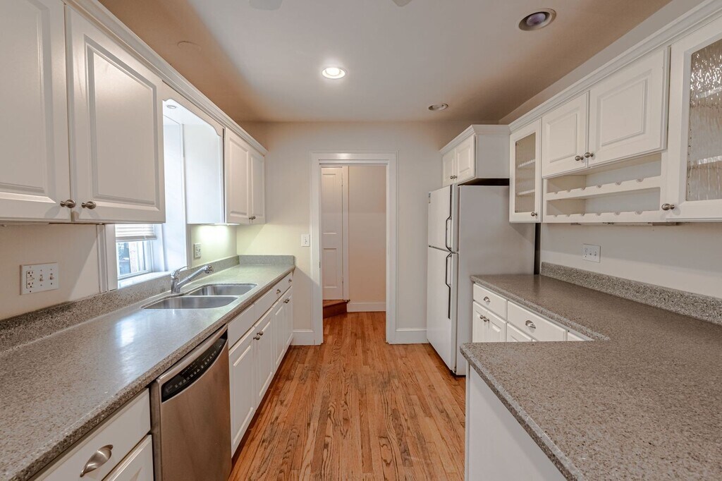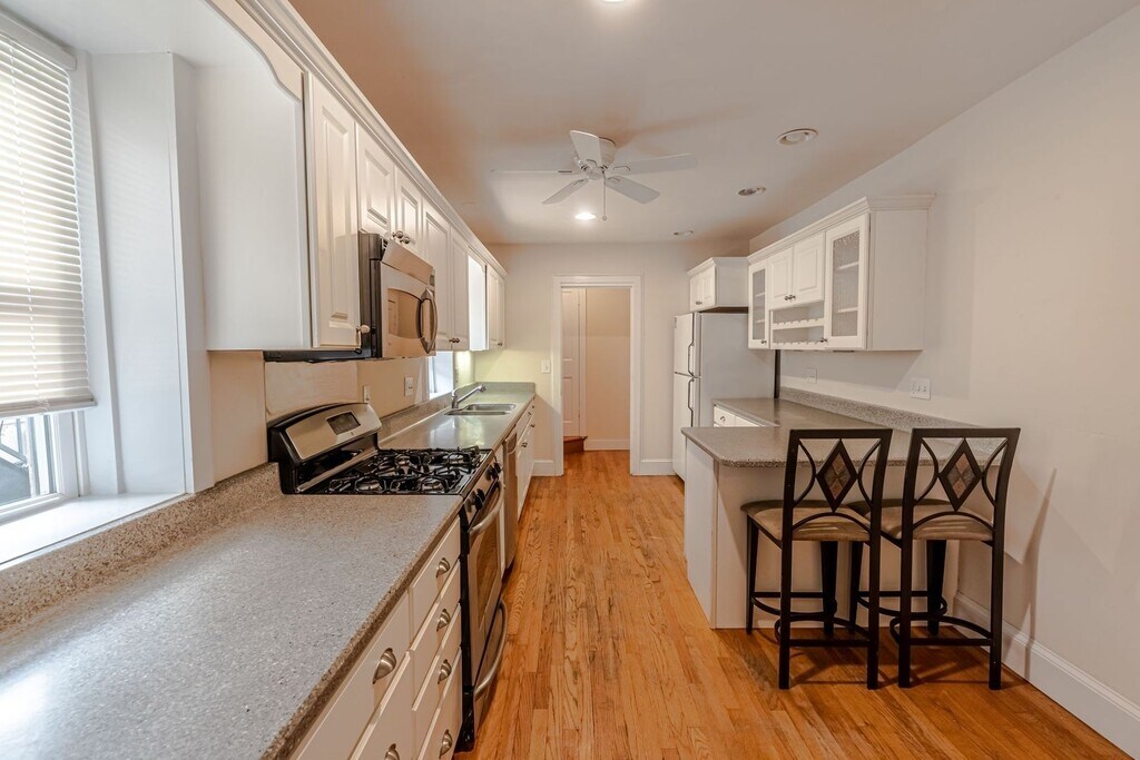 Beautiful 4-bedroom 3-bathroom townhouse in the heart of Fells Point. Large living/dining room combo with a wood burning fireplace in the dining room. Great original hardwood floors throughout first floor. Spacious galley kitchen with Corian counters and breakfast bar. Kitchen comes with gas stove, built-in microwave, refrigerator, and dishwasher. Courtyard off the kitchen. Washer/dryer on first floor. Two primary bedrooms with ensuite bathrooms, hardwood flooring and dressing areas. Third bedroom with walk-in closet. Attached to the main house there is a one-bedroom apartment with a small kitchen and living room on the first floor. On the second floor there is a large bedroom and its own full bath. There is also a small deck off the bedroom. There are some furniture pieces that come with the house. Pets allowed with nonrefundable pet fee of $300 per dog, $200 per cat. Available Mid-June 2026 for $3,300/ month + utilities. Renters Insurance Required. Baltimore City Rental Property License #L-513216. #CantonManagement #propertymanagementbaltimore #baltimorepropertymanagement. Please inquire about virtual showings.