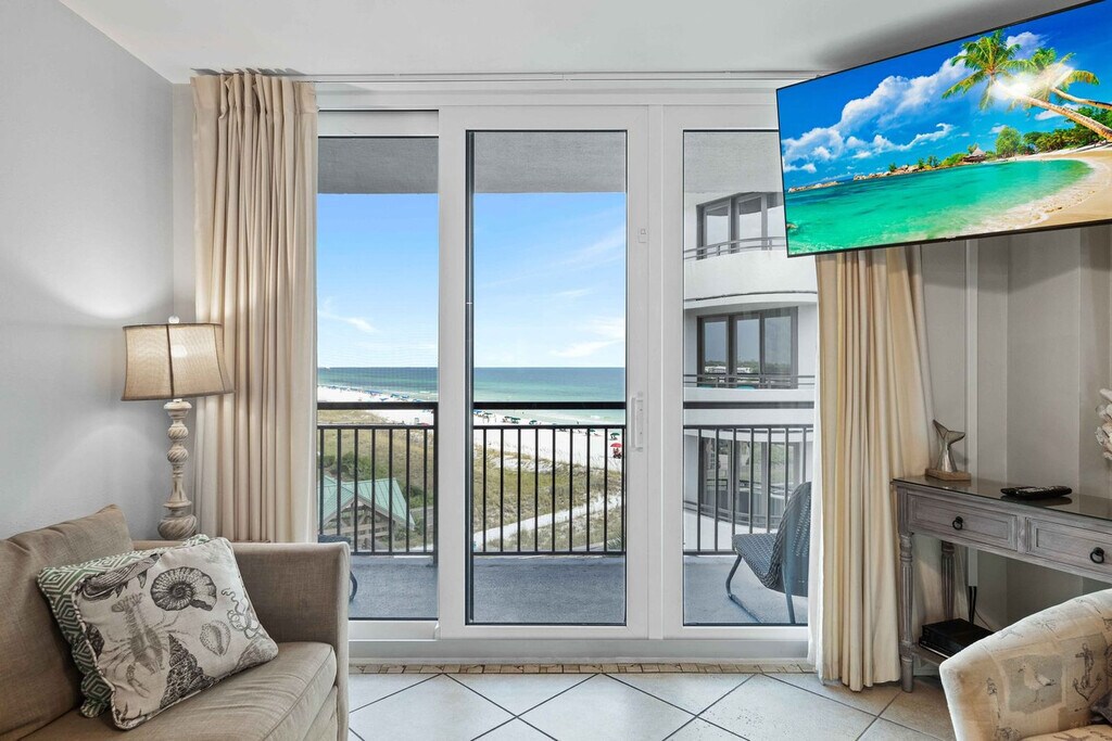 The advertised rate of $5,815/month is the lowest available price, based on a 30 day(s) stay with a move-in date of August 9, 2026. Rates vary depending on the duration of stay, season, and other parameters. For exact pricing and additional pricing components, please visit our website and enter your desired move-in and move-out dates. The rate is applicable when billed upfront; it can be higher if billed in multiple payments. Feel at home in this stylish beach retreat on the 6th floor of a 7-story building, steps from the sugar-white sands of Okaloosa Island. Nautilus 2607 is a luxe 2-bedroom corner unit with Gulf and pier views from a wraparound balcony. This apartment features a fully stocked kitchen with granite countertops, full-size stainless steel appliances, a drip and K-cup coffee maker, and a toaster. The living area has two plush couches and a 60-inch Smart TV. Both bedrooms feature king beds with luxury hotel-grade linens. A washer and dryer in the unit keeps your beachwear fresh, and high-speed Wi-Fi lets you stream with ease. Enjoy complimentary beach service with two chairs and an umbrella. Free on-site parking is included. Located on Okaloosa Island, this apartment overlooks Beach Access #4, giving you a front-row seat to one of the island’s most convenient entry points to the sand. The Okaloosa Island Pier and The Boardwalk are just down the beach, and Gulfarium Marine Adventure Park, Wild Willy’s Adventure Zone, and downtown Fort Walton Beach are just a few minutes away. Destin HarborWalk Village is a quick 10-minute drive. Locals must communicate with the host before booking. Check-out time is 10 am, and a $50 fine will be applied if not checked out by the specified time. Guests agree to pay a $500 smoke damage cleaning fee if any sign or smell of smoke is encountered after check-out. Pets are not allowed at this property. If Guest exceeds the occupancy noted in the reservation, all guests and/or visitors to the Property will be immediately evicted without refund for unused days remaining. Guest also agrees to pay a charge of $20 per person/ per day for every visitor not identified by Guest in the reservation. You must be 25 years of age or older at the time of booking to reserve this Property. [SI]