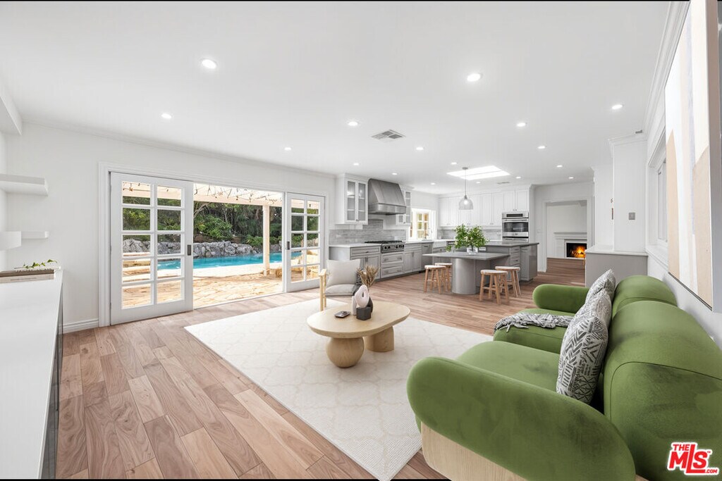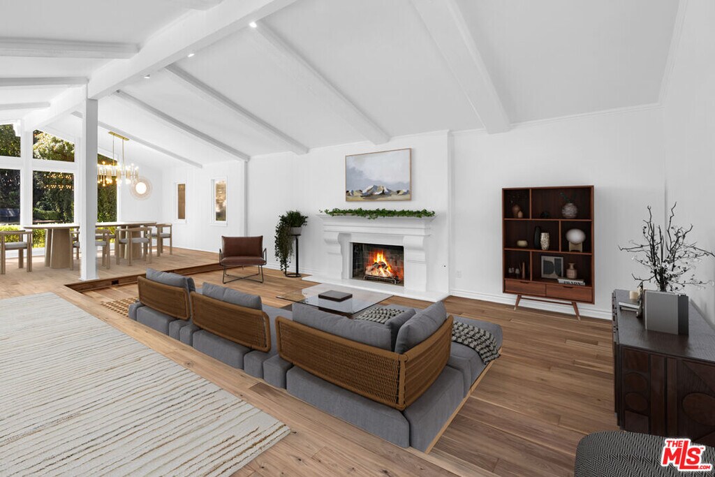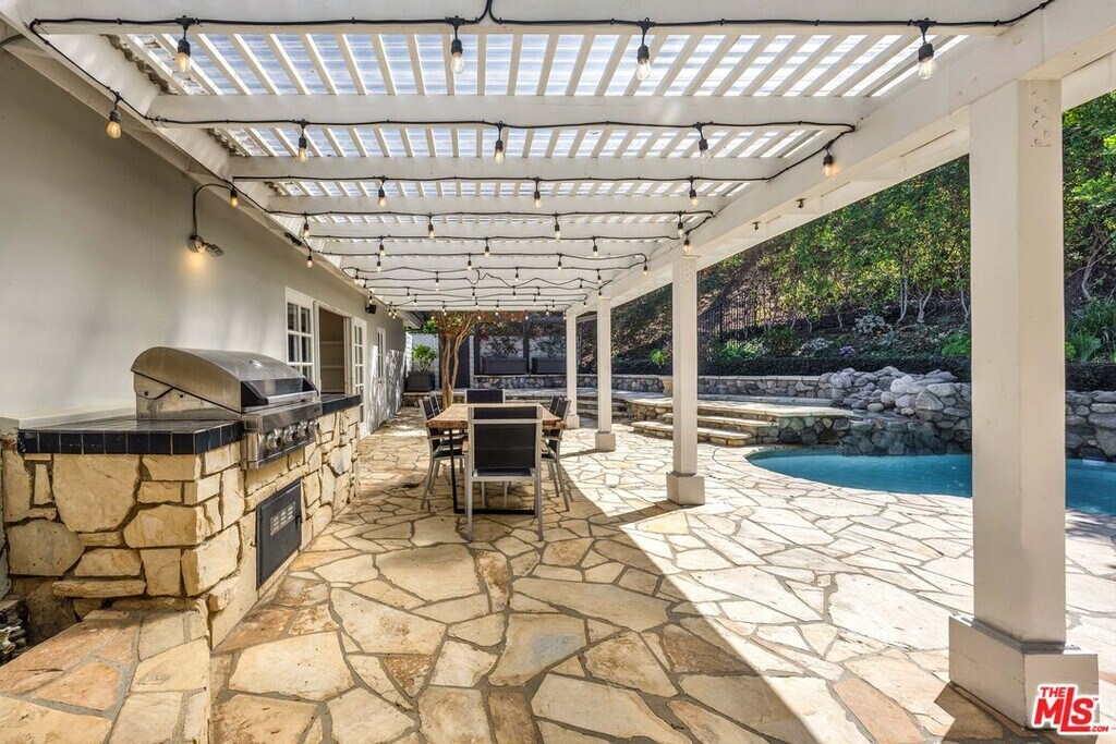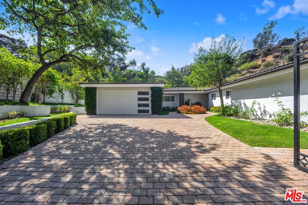 This exceptional 3,556 sq.ft. single-story Mid-Century Ranch, updated with Contemporary finishes, sits behind stately private gates, offering a rare opportunity for an unfurnished minimum one-year lease. Impeccably maintained and blending timeless charm with modern luxury, the home is ideally located in the coveted Laurel Hills neighborhood, within the acclaimed Wonderland Avenue Elementary School district and near the Mulholland Tennis Club. The property offers complete privacy, lush landscaped grounds, and effortless indoor/outdoor living. Inside, you'll find 5 bedrooms and 3.5 bathrooms, including an expansive double primary suite retreat with vaulted high ceilings, a cozy sitting area with fireplace, white paneled walls, a private office nook, a spa-quality bathroom with soaking tub and separate shower, and an expansive walk-in closet. Four bedrooms are thoughtfully positioned on one side of the home, while a private fifth bedroom with its own bath is located on the opposite side ideal for guests or staff. The expansive step-down living room with pitched beam ceilings, a gas fireplace, and oversized windows flows seamlessly into the formal dining room, a stylish wet bar, and a comfortable lounge. The gourmet kitchen is outfitted with top-of-the-line appliances, granite countertops, a breakfast area, and an eat-in island all opening directly to the backyard for easy entertaining. Wide-plank walnut wood floors, fresh paint, wood-paned or triple-paned windows, and elegant lighting fixtures enhance the home's warm yet sophisticated feel. The backyard is a true private oasis, featuring a sparkling heated pool and spa, a sun deck with built-in BBQ, a grassy lawn, and multiple lounging spaces perfect for dining al fresco or hosting. With its flat lot and perfect indoor/outdoor flow, the home is equally suited for relaxed living or large-scale entertaining. This gated retreat not only offers resort-style living but also eco-conscious luxury with solar panels and an EV charging station, helping to keep energy costs low. Located just off Mulholland Drive and minutes from both the Westside and the Valley, this rare offering combines comfort, style, and convenience in one of Los Angeles's most desirable neighborhoods. MLS# 25588785