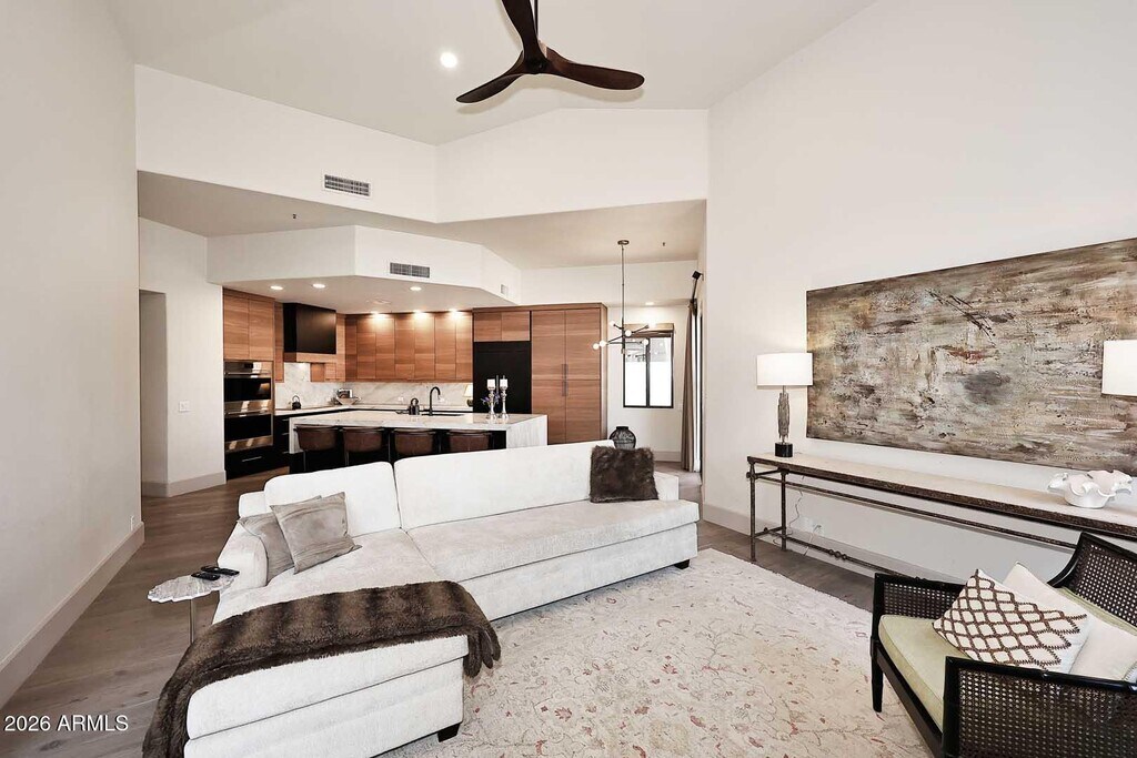 LUXURY LIVING IN THIS BEAUTIFUL CONTEMPORARY HOME. PERFECTLY LOCATED IN SCOTTDALE COUNTRY CLUB. THIS HOME OFFERS 3 BEDROOMS,OFFICE WHICH HAS A MURPHY BED AND 2.5 BATHS. PRIMARY BEDROOM SPLIT. WONDERFUL WIDE PLANK WHITE OAK HARDWOOD FLOORING,ABUNDANT WINDOWS FLOOD THE HOME WITH LIGHT. THE GREAT ROOM OFFERS A LARGE GATHERING AREA,THE FIREPLACE WALL IS HALLMARK OF ART AND ADJACENT DINING ROOM AND ALSO ADJOINING BEVERAGE BAR ADDS TO THE GREAT OPEN ATMOSPHERE. AN AMAZING KITCHEN WITH A GRAND QUARTZITE ISLAND OPENS TO FAMILY ROOM AND EXITS FROM BOTH ROOMS OUT TO LOVELY ENTERTAINING BACKYARD. MUCH MORE ENJOYMENT TO HAVE IN THIS INCREDIBLE HOME. COMMUNITY AMENITIES INCLUDE GOLF,TENNIS AND STARFIRE GOLF CLUB. MINUTES FROM WORLD-CLASS SHOPPING,DINING AND MUCH MORE!! ONLY AVAIL. IN 2027.