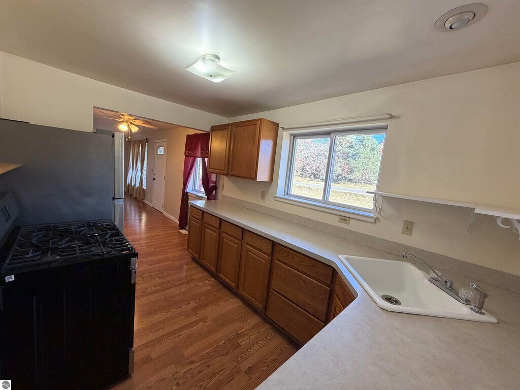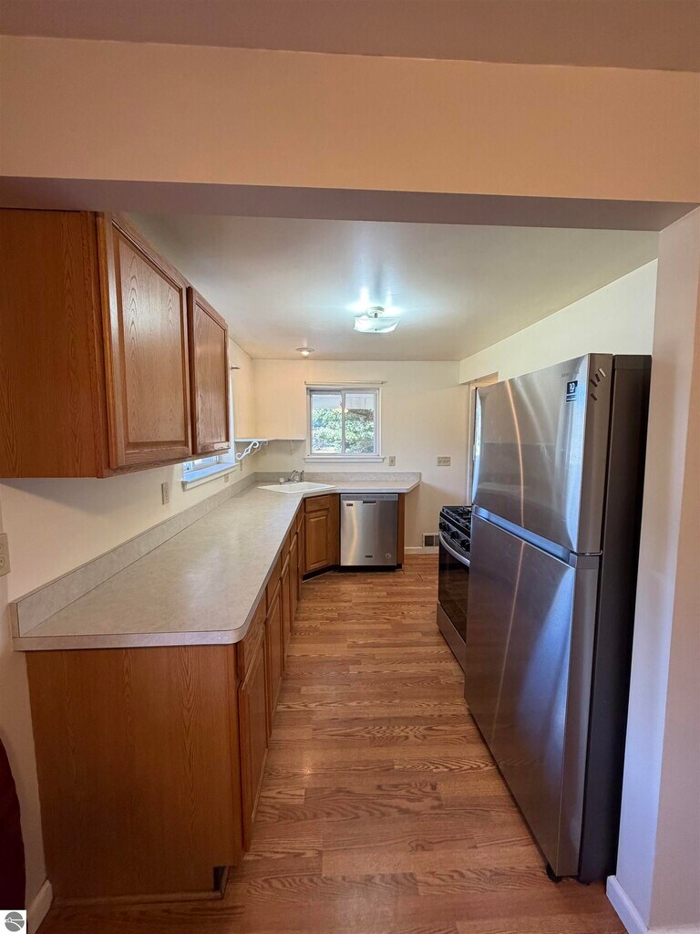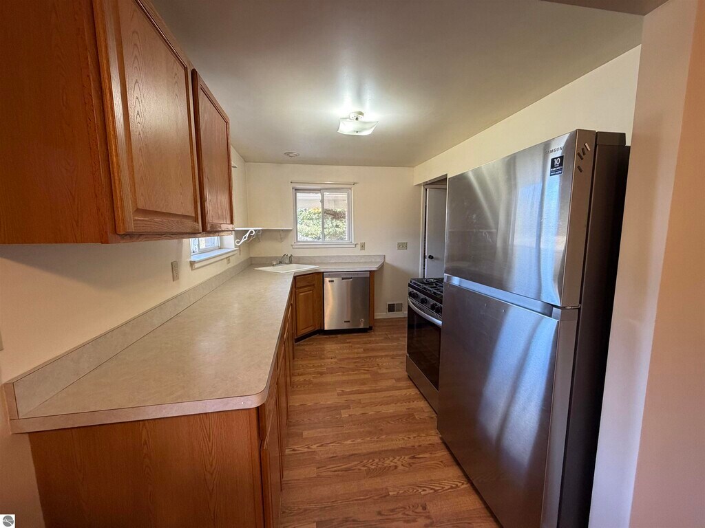 Charming Brick Ranch for Lease – Quality Updates & Great Location. This well-maintained 4-bedroom, 2-bathroom home features 1,200 sq. ft. of living space. Three of the bedrooms are located upstairs, and one bedroom is on the main level. It has updated wiring and plumbing, a newer furnace with central air, updated windows, professional insulation, and durable LVP flooring. The kitchen features classic oak cabinets and updated stainless steel appliances. The main-floor laundry room offers additional cabinetry and a spacious closet. The full, unfinished dry basement adds an extra 1,200 sq. ft. of space, perfect for storage or hobbies. There is even a playroom/family room area on the upstairs level. The one-car garage is deep and allows for a workbench to the side. There is also an outside shed for storage of lawn accessories. Pets are welcome, with a limit of two per household. A non-refundable $250 fee applies per pet. A security deposit equal to one month’s rent is required. Prospective tenants must apply through RentSpree at which includes a $49 non-refundable fee for background and credit checks. Tenants are responsible for all utilities, snow removal, and lawn maintenance. This home is move-in ready and available for immediate occupancy. Conveniently located just 8 min. to Kingsley, 22 min. to Traverse City, and 22 min. to Cadillac.