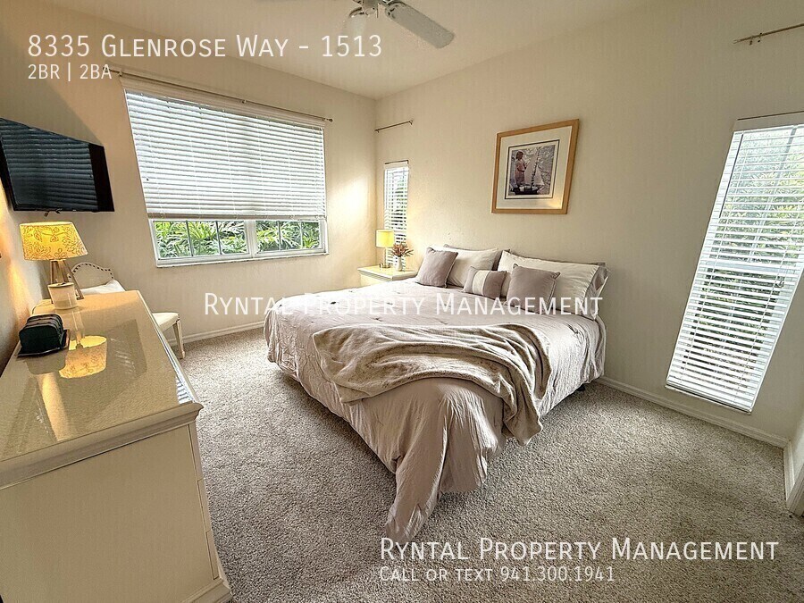 Seasonal Rental Available 2026! Fully furnished first-floor condo located in Pinestone at Palmer Ranch. This 2BR/2BA plus bonus room residence offers over 1,200 sq. ft. of living space and is available for a minimum of 3 months and a maximum of 6 months. Features include an open-concept kitchen and dining area with breakfast bar and full appliance package, primary suite with en-suite bath and walk-in closet, spacious guest bedroom, bonus room with convertible sofa, in-unit washer and dryer, screened lanai, and additional paved outdoor seating area. Carpet and tile throughout. Covered parking and private storage included. Ground maintenance and trash included. Sorry, no pets. Palmer Ranch offers resort-style amenities including a community pool, fitness center, tennis courts, basketball court, theater, and billiards room. Conveniently located near beaches, shopping, and dining! Lease Terms: 3 to 5 months: $2,500/month + $150/month utilities + applicable taxes, departure clean, $150 HOA application fee, and security deposit. Internet included. 6 months +1 day: $2,500/month + water/sewer ($80 single occupancy / $100 double occupancy). Separate HOA application required (approx. 2-week approval). Qualifications: We run a complete background check that includes credit, criminal, income verification, prior landlord and eviction history. In terms of credit, we look at the entire picture as opposed to just the credit score, but in general, we do require a score over 550. Please call for more information. This property is professionally managed by Ryntal, LLC, a PMI SWFL company. Are you a Property Owner looking for Management Services? We can help!! We are a leader in Sarasota, Manatee, Pasco, Hillsborough, and Charlotte Counties in Residential and small commercial property management services. For more info, please call Bonus Room Clubhouse Mature/Tropical Landscaping Screened Lanai Shuffleboard Solid Surface Countertops Tray Ceiling