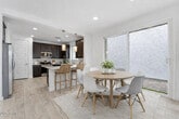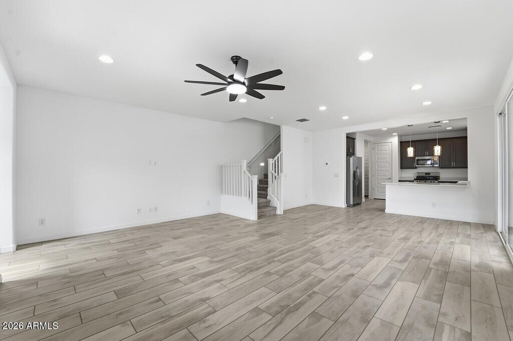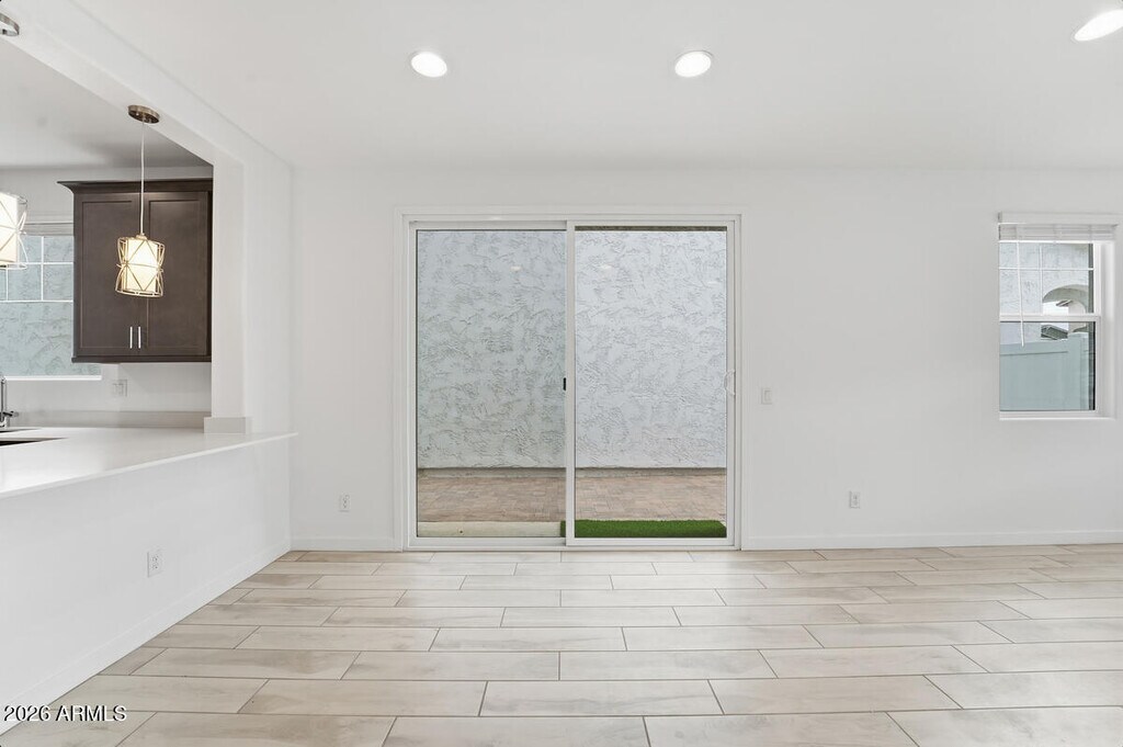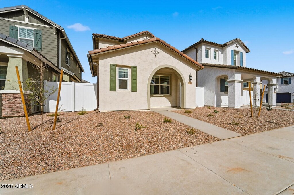 Welcome home to this brand-new,beautiful 3-bedroom,2.5-bathroom residence located at 8336 E. Peterson Ave. in Mesa,AZ 85212,conveniently close to the Loop 202 freeway for easy commuting and access to all the Valley has to offer. This well-designed home features a two-car garage and a thoughtfully laid-out interior with a stylish blend of tile flooring and plush carpet throughout. The spacious kitchen is a true highlight,complete with stainless steel appliances,a pantry,and a large kitchen counter ideal for meal prep and entertaining. The open-concept layout flows effortlessly into the living area,where a sliding glass door fills the space with natural light and offers easy access to the outdoors. Upstairs,the primary suite provides a relaxing retreat with a walk-in closet,d